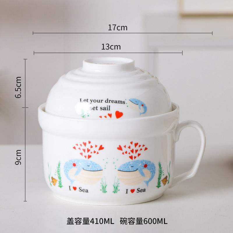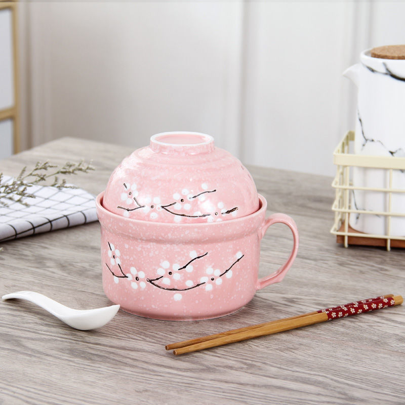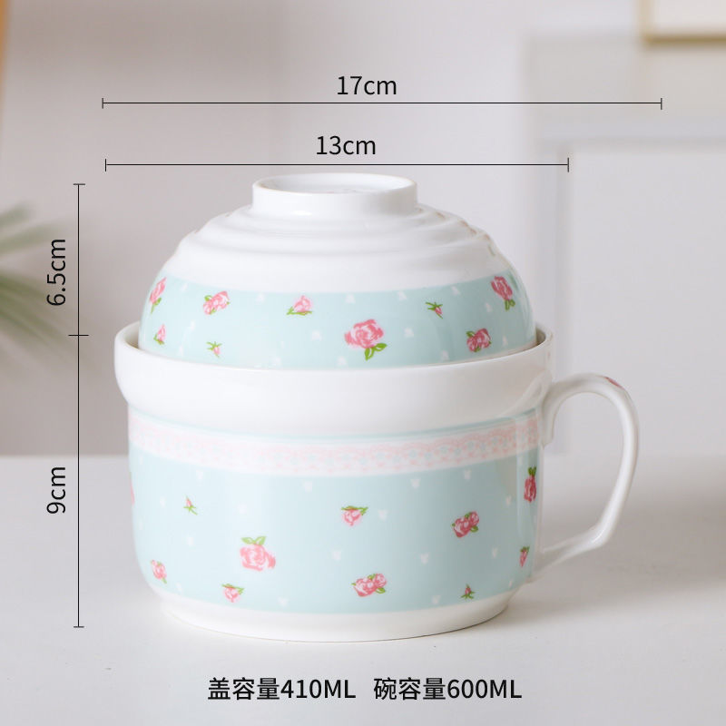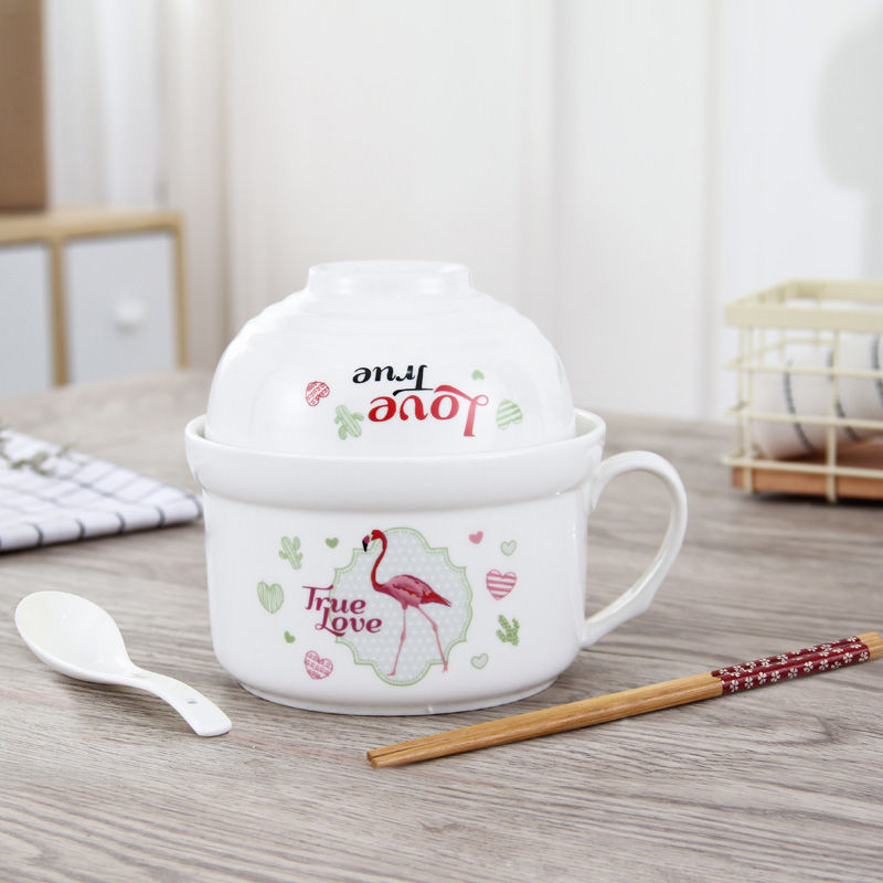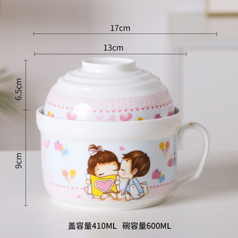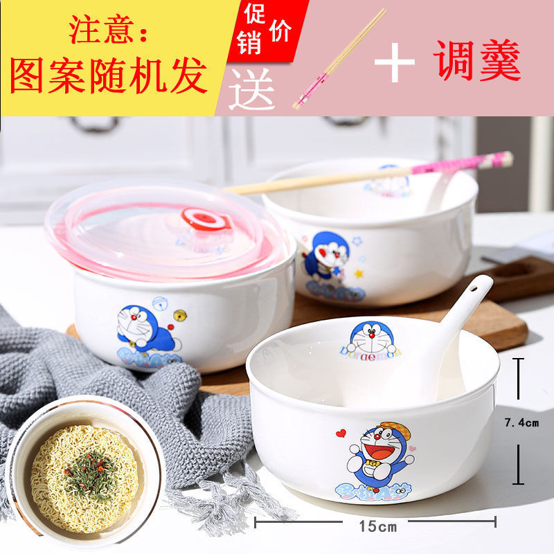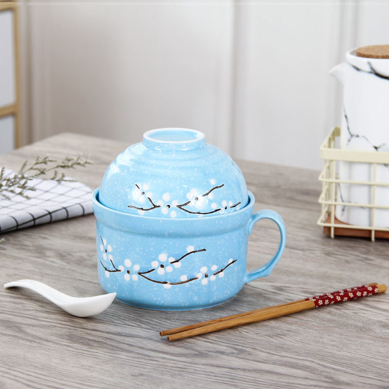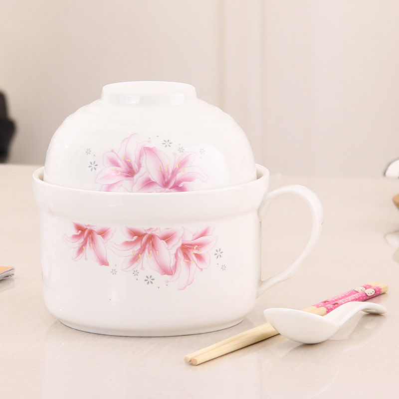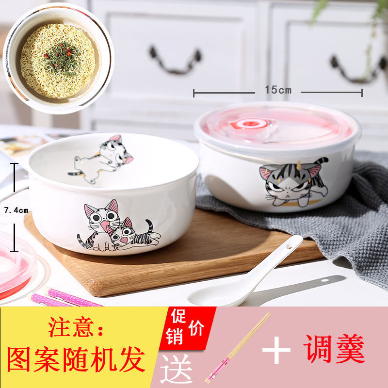 세라믹 즉석 국수 그릇 뚜껑이 달린 도자기 그릇 가정 식당 자체 가져온 그릇 기숙사 학생 그릇 젓가락 세트스토어 가기