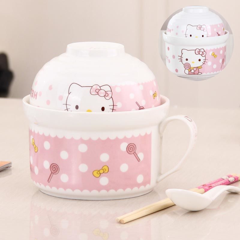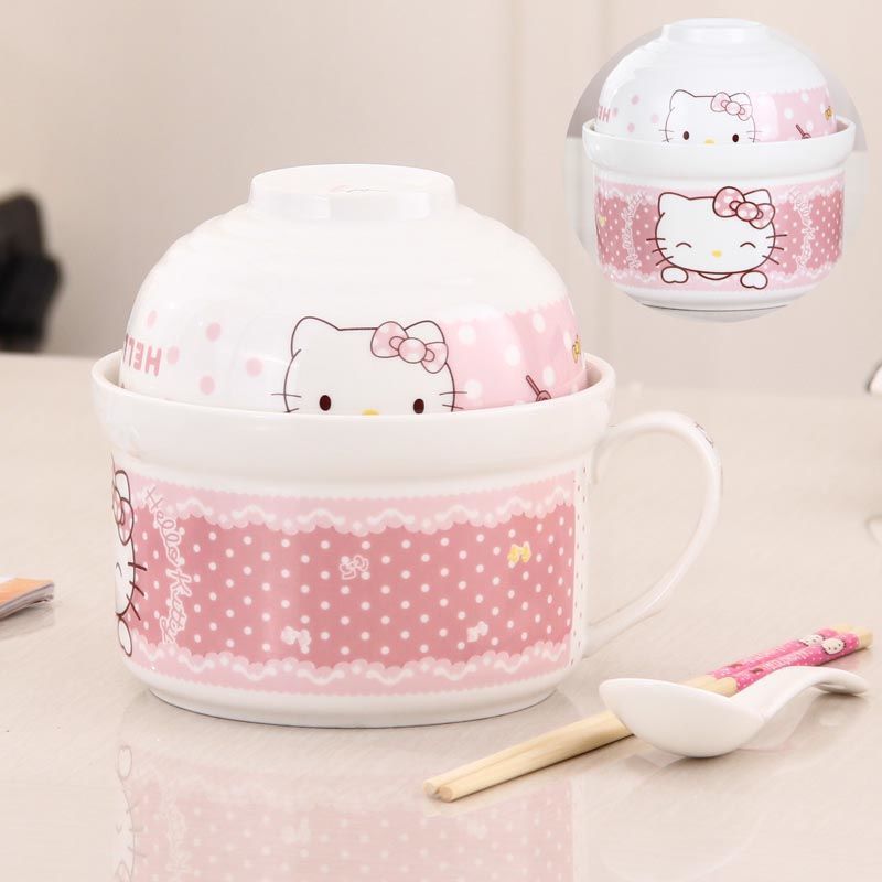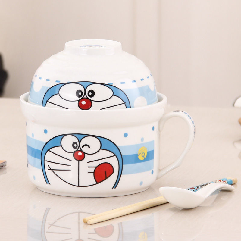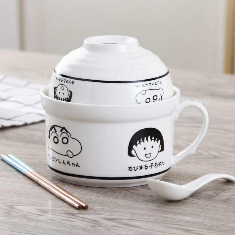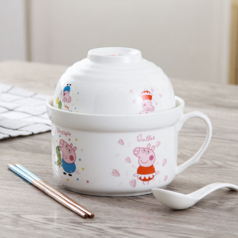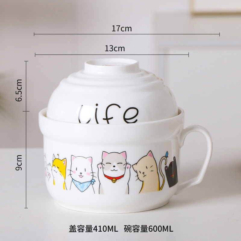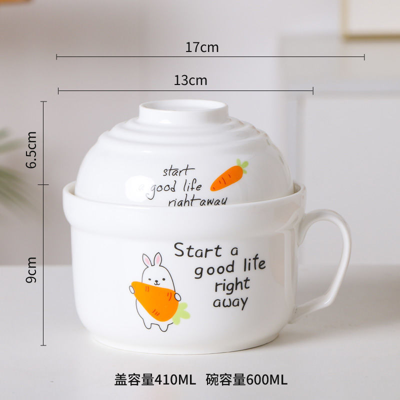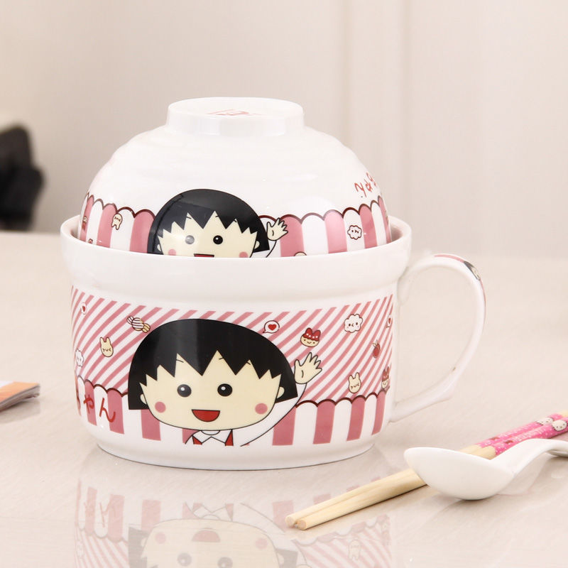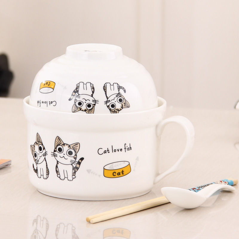 세라믹 즉석 국수 그릇 뚜껑이 달린 도자기 그릇 가정 식당 자체 가져온 그릇 기숙사 학생 그릇 젓가락 세트스토어 가기
