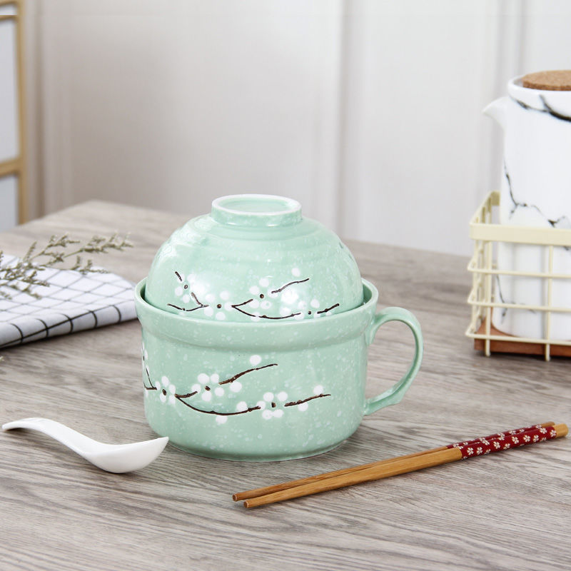 세라믹 즉석 국수 그릇 뚜껑이 달린 도자기 그릇 가정 식당 자체 가져온 그릇 기숙사 학생 그릇 젓가락 세트