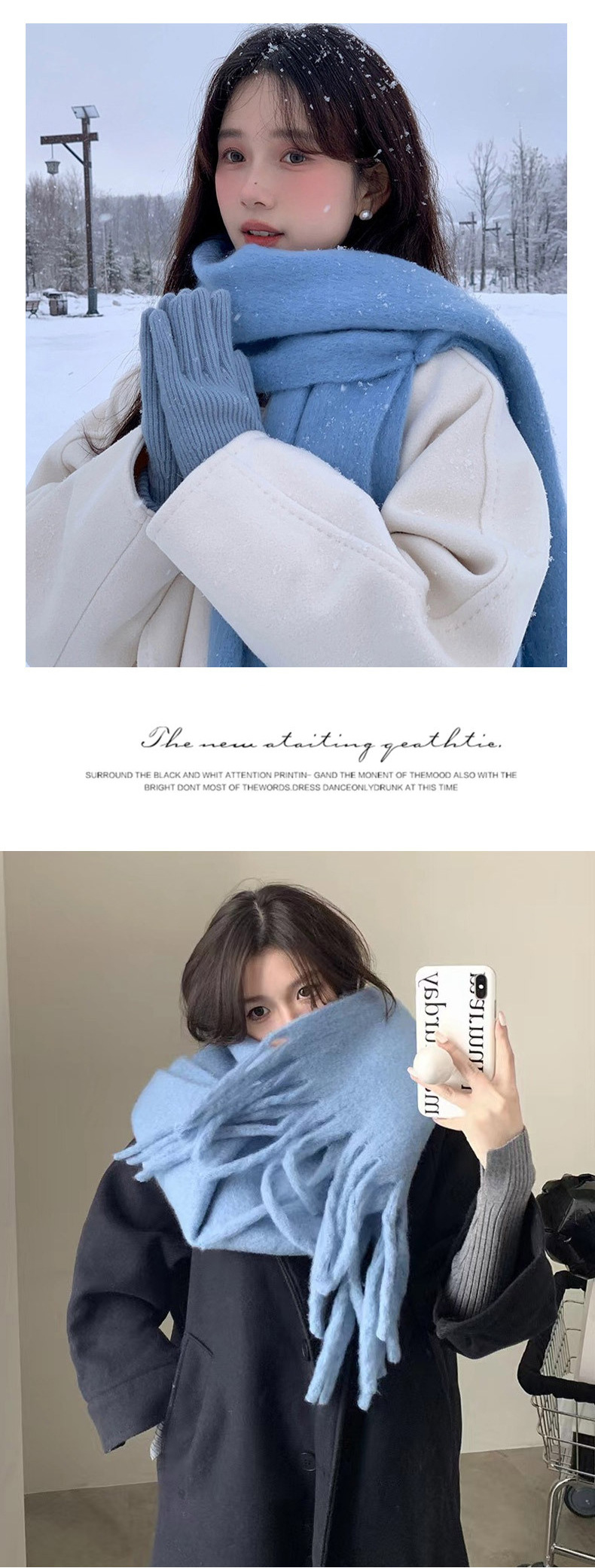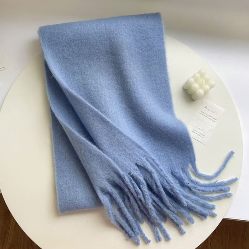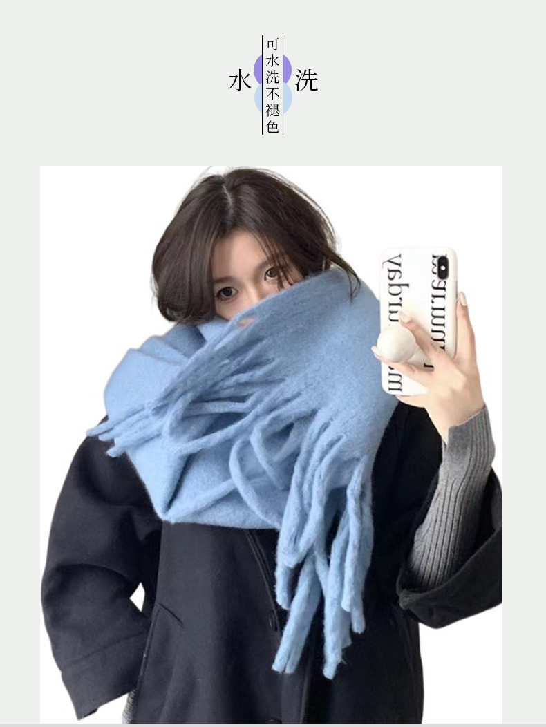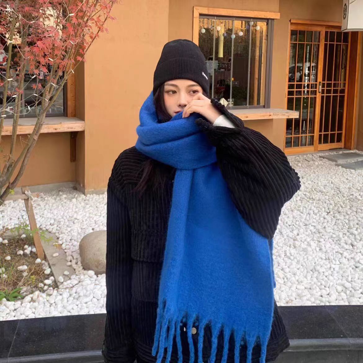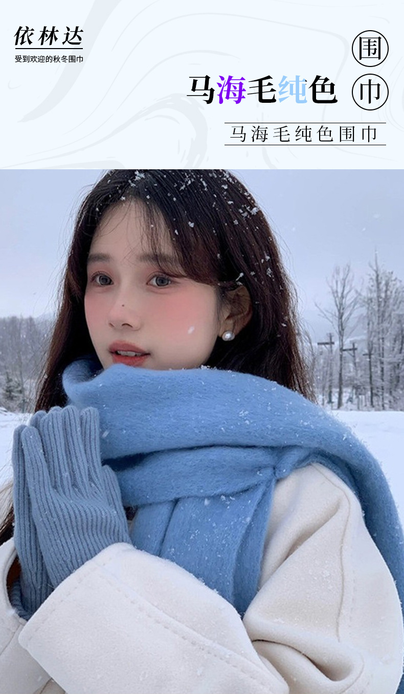한국 스타일 분위기 스카프 가을 겨울 여성용 겨울용 해마털 블루 라이트 럭셔리 고급스러운 느낌 스카프 다용도 클라인 블루
