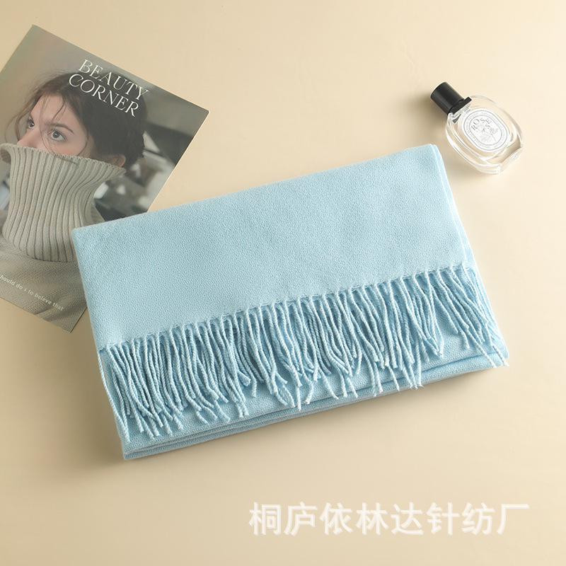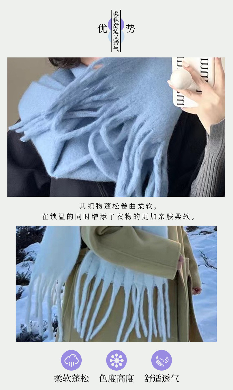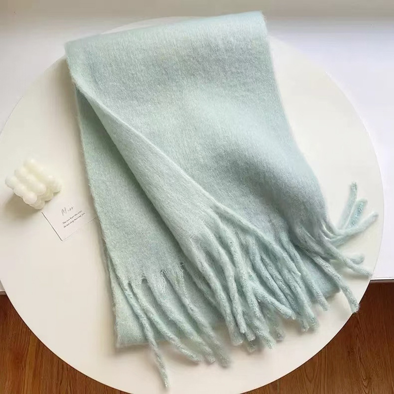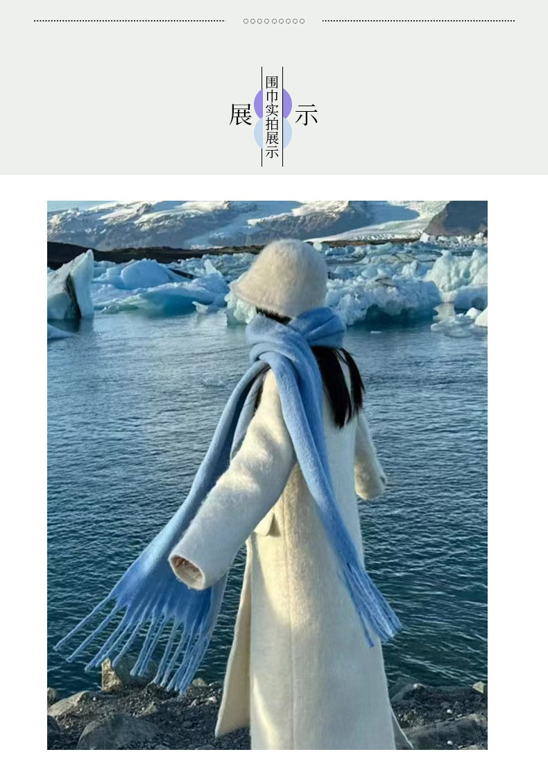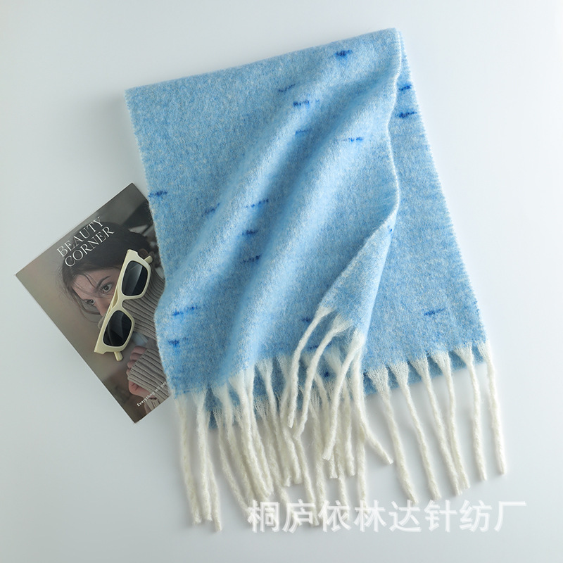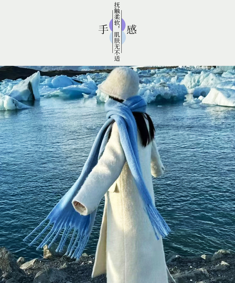 한국 스타일 분위기 스카프 가을 겨울 여성용 겨울용 해마털 블루 라이트 럭셔리 고급스러운 느낌 스카프 다용도 클라인 블루