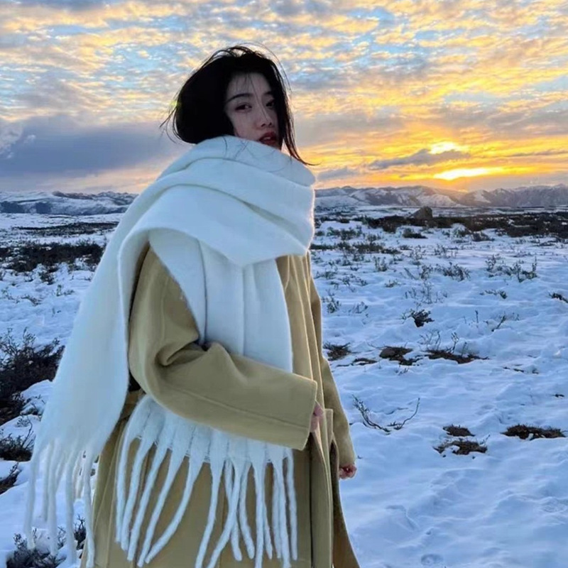 한국 스타일 분위기 스카프 가을 겨울 여성용 겨울용 해마털 블루 라이트 럭셔리 고급스러운 느낌 스카프 다용도 클라인 블루스토어 가기