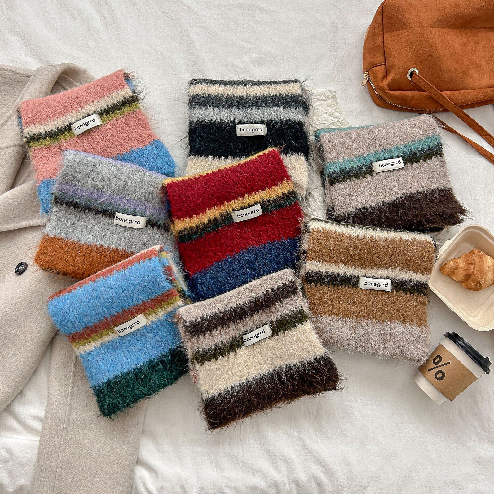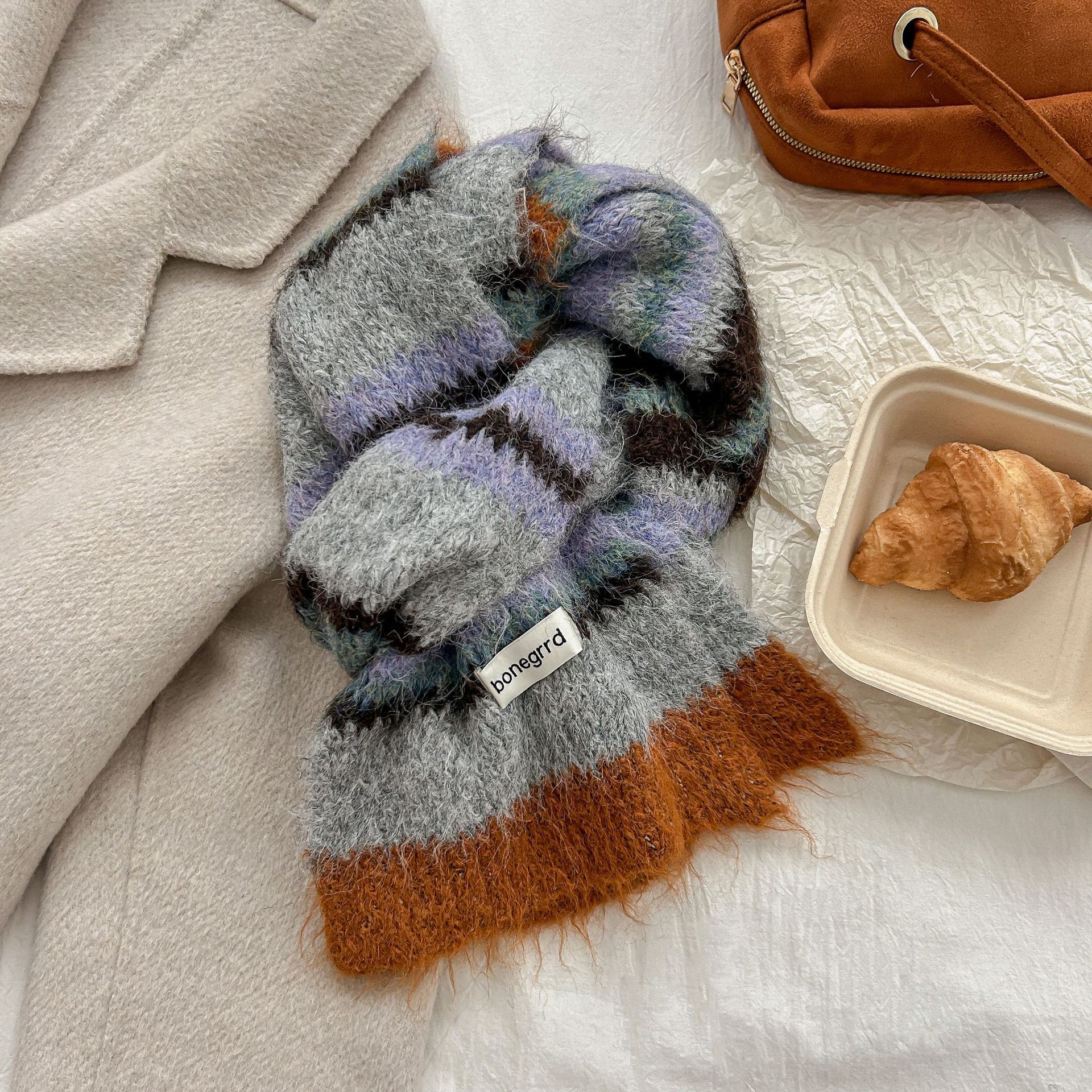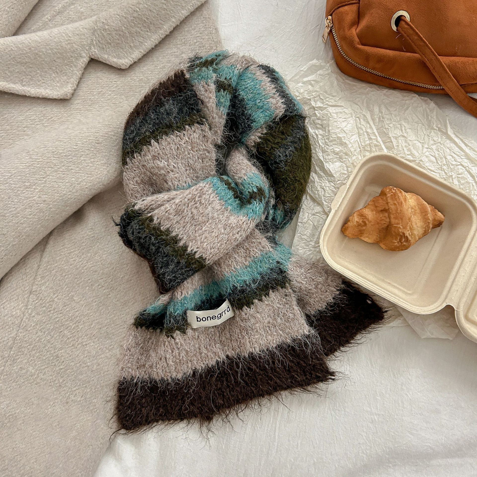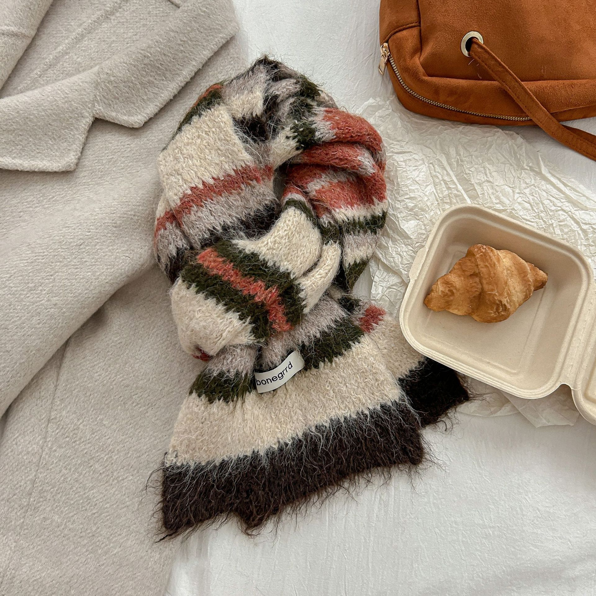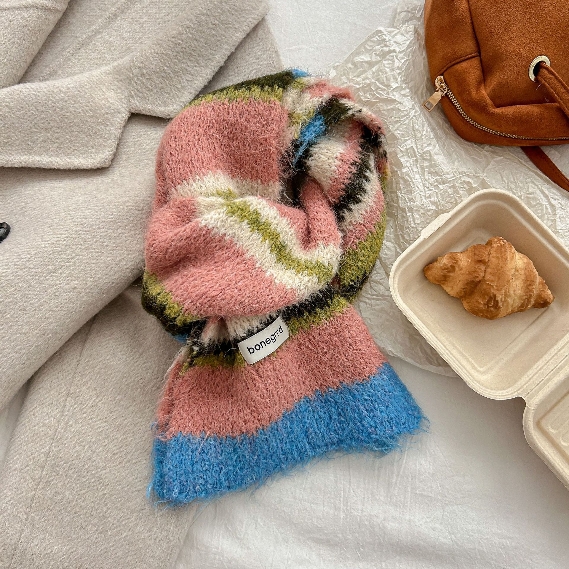 울 스카프 포함 여성용 루프 원사 새로운 가을 겨울 한국식 고급 분위기 도파민 스트라이프 대비 컬러 스카프