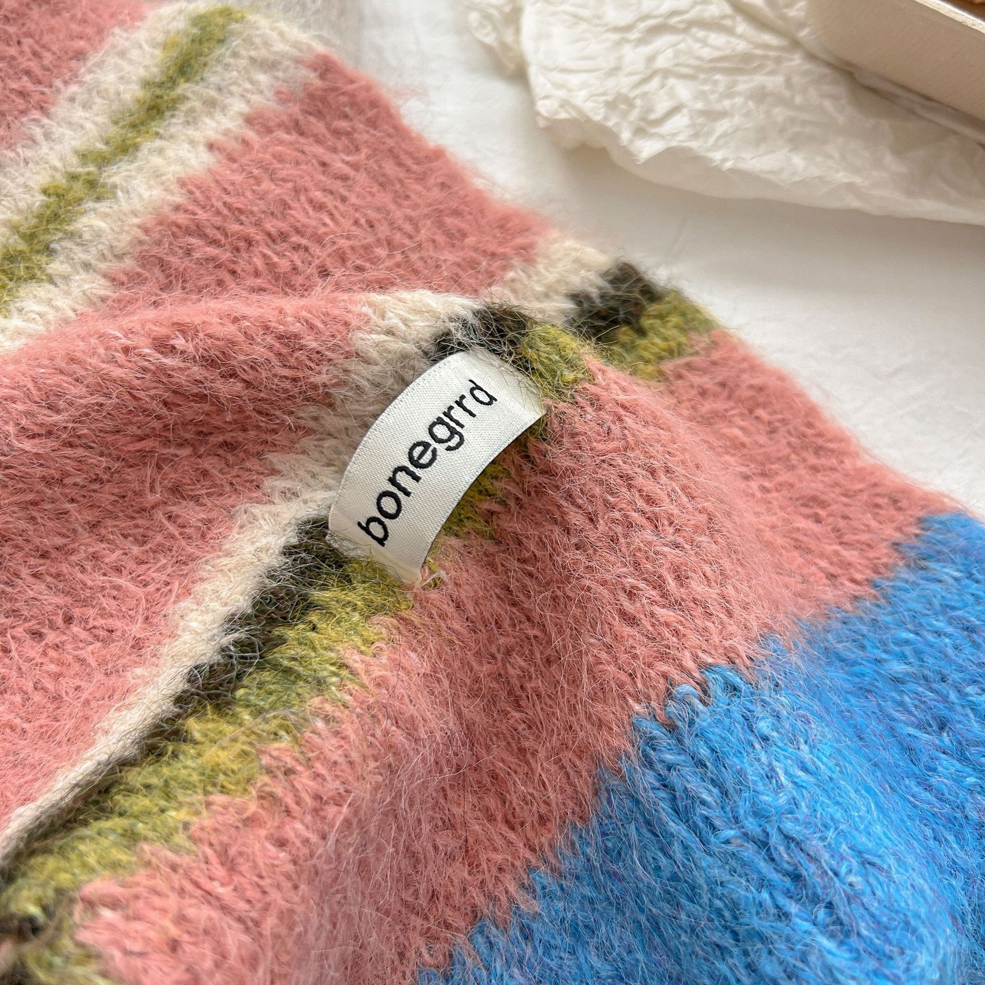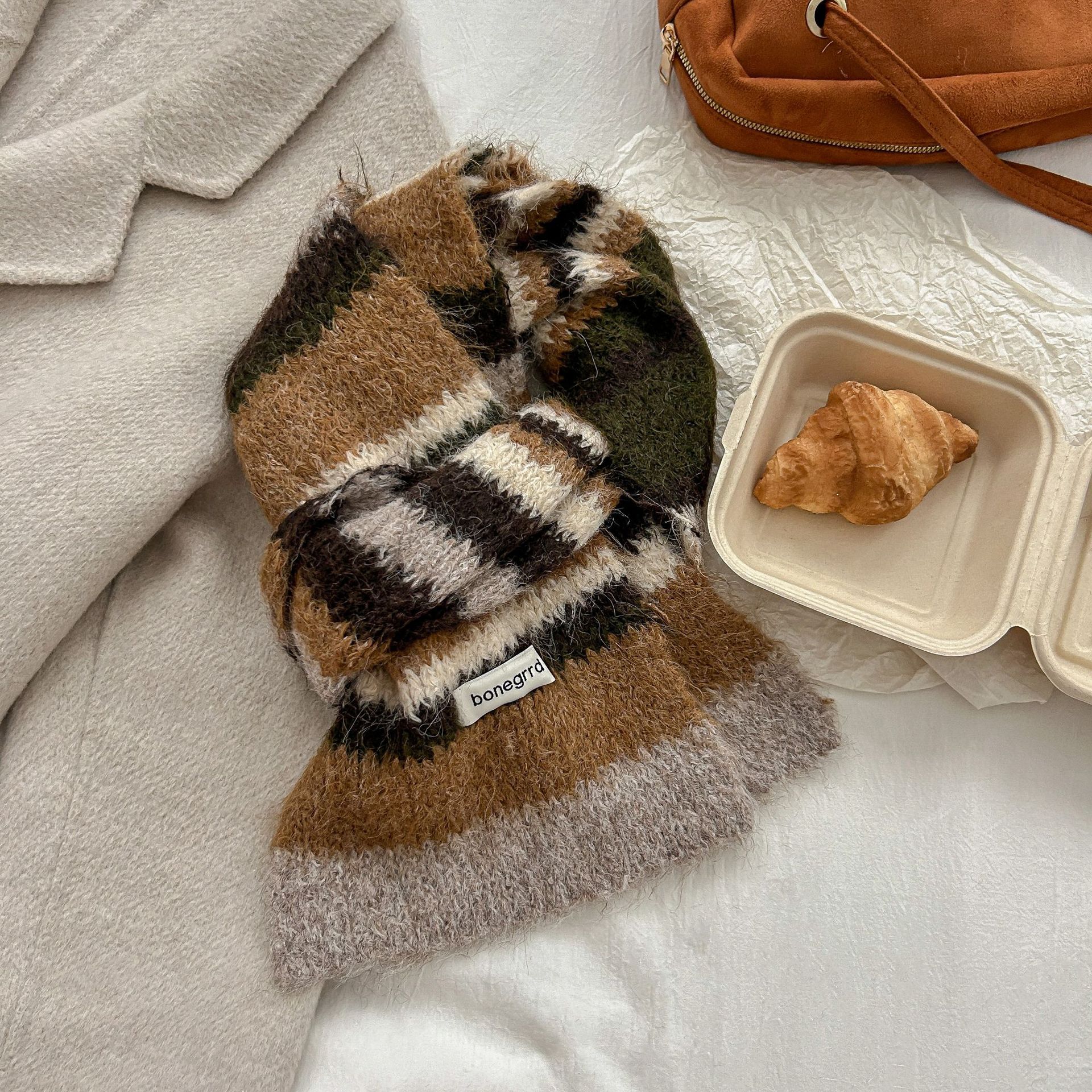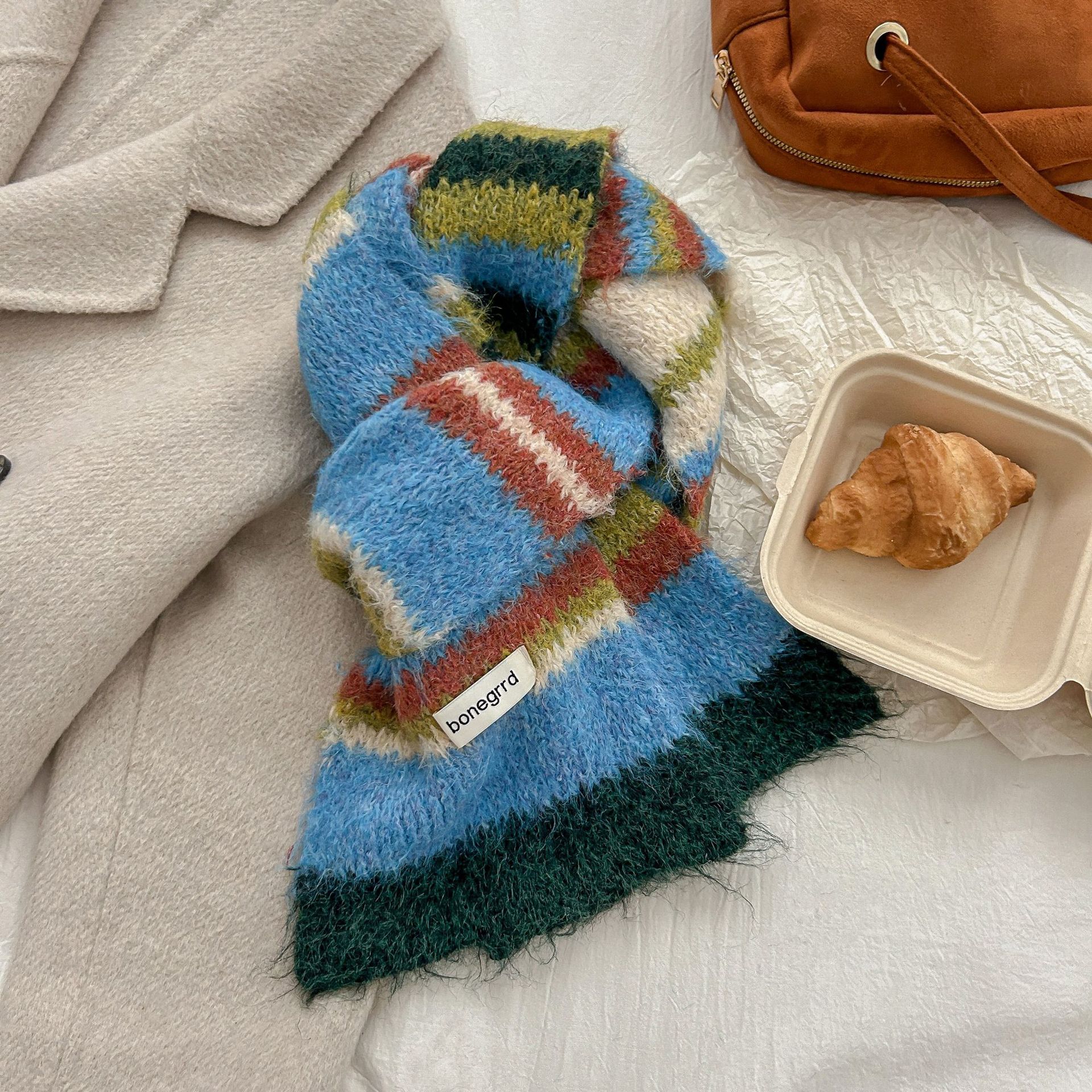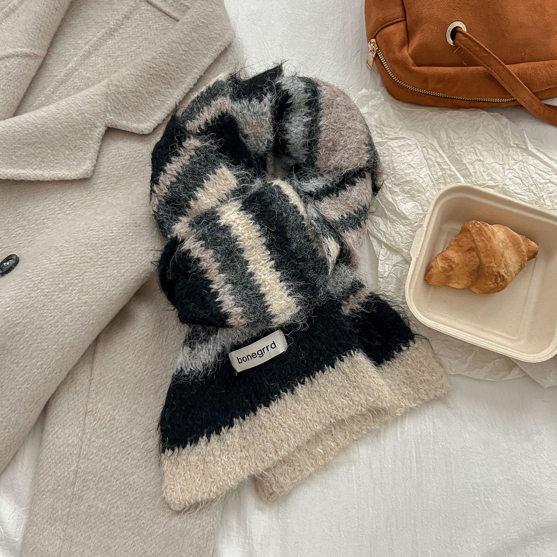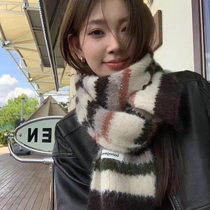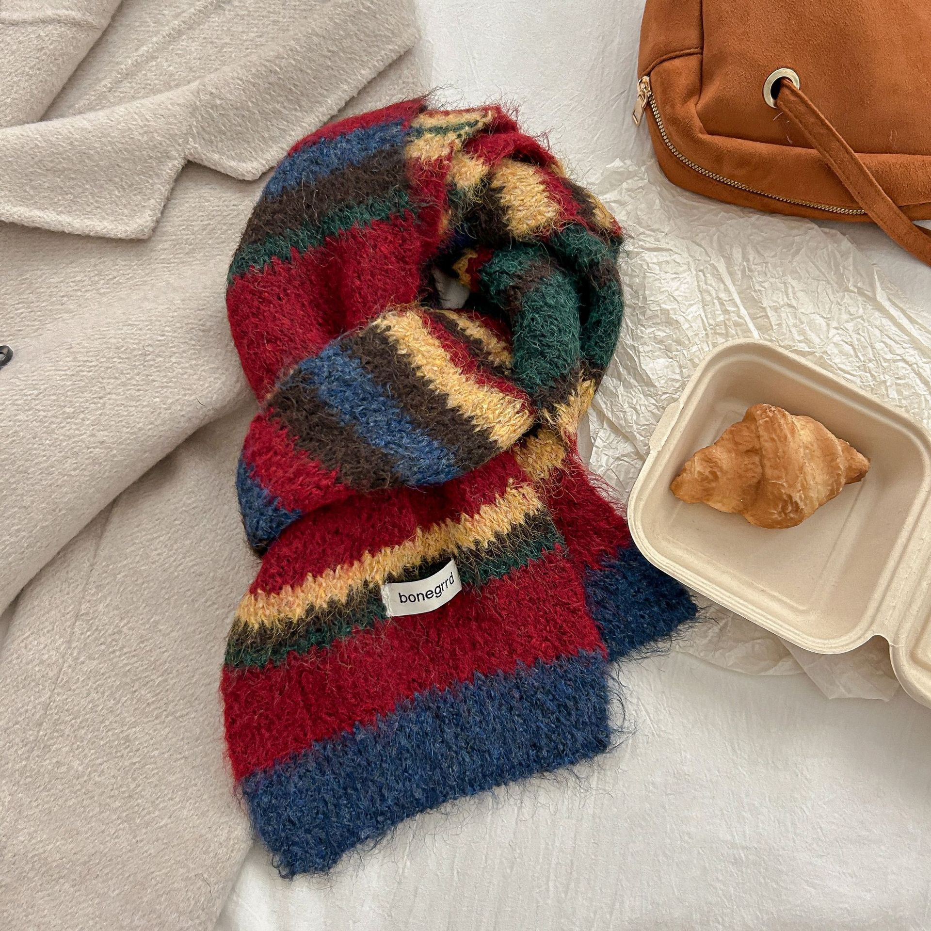 울 스카프 포함 여성용 루프 원사 새로운 가을 겨울 한국식 고급 분위기 도파민 스트라이프 대비 컬러 스카프