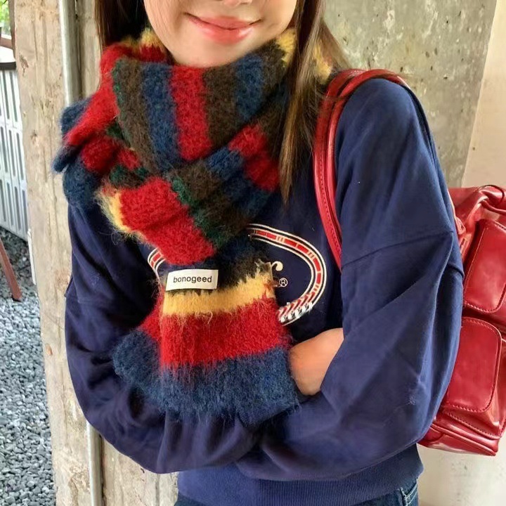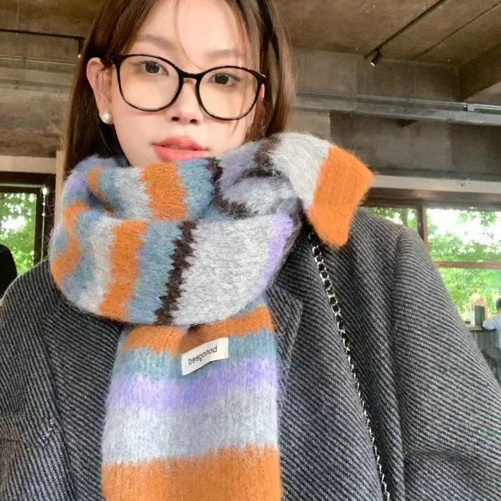 울 스카프 포함 여성용 루프 원사 새로운 가을 겨울 한국식 고급 분위기 도파민 스트라이프 대비 컬러 스카프스토어 가기