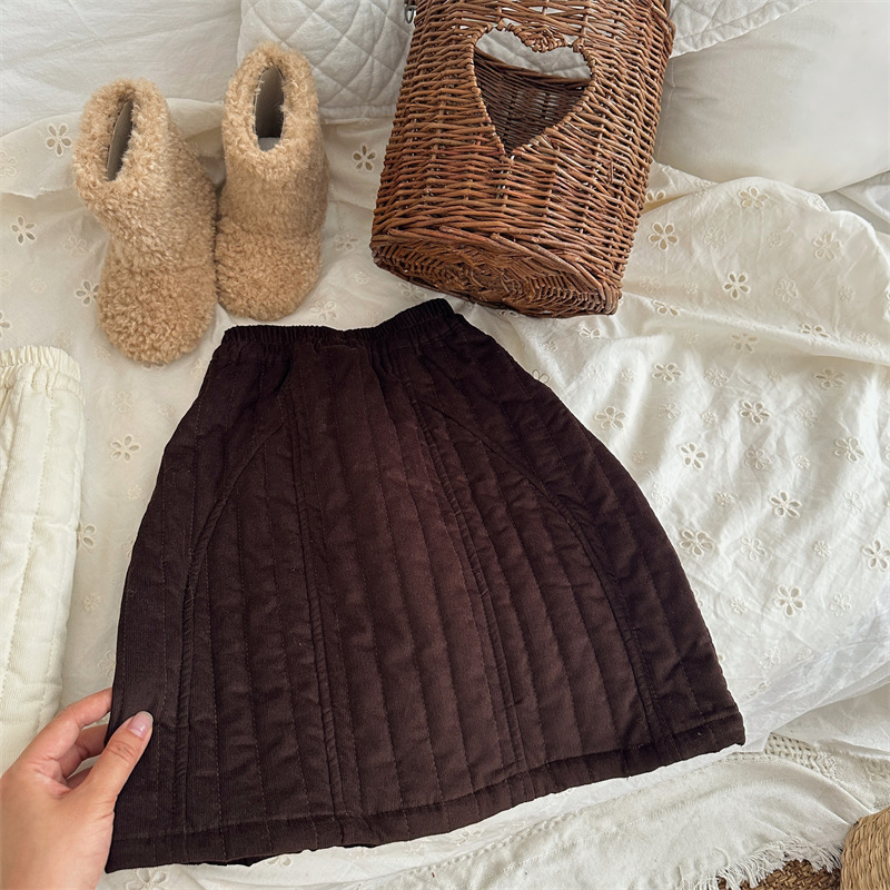 Xi Fan 2024 겨울 어린이 한국식 퀼트 코튼 스커트 소녀 솔리드 컬러 바느질 서양식 스커트