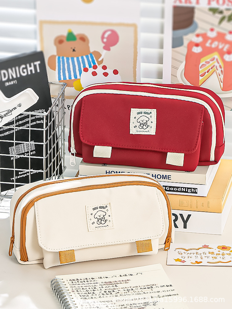 새로운 초급 고등학생 연필 케이스 높은 가치의 문구 가방 대용량 이중 지퍼 다층 문구 보관 가방