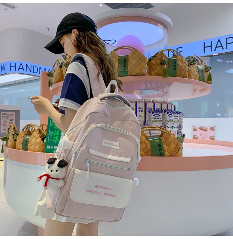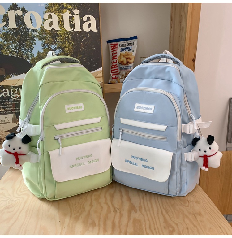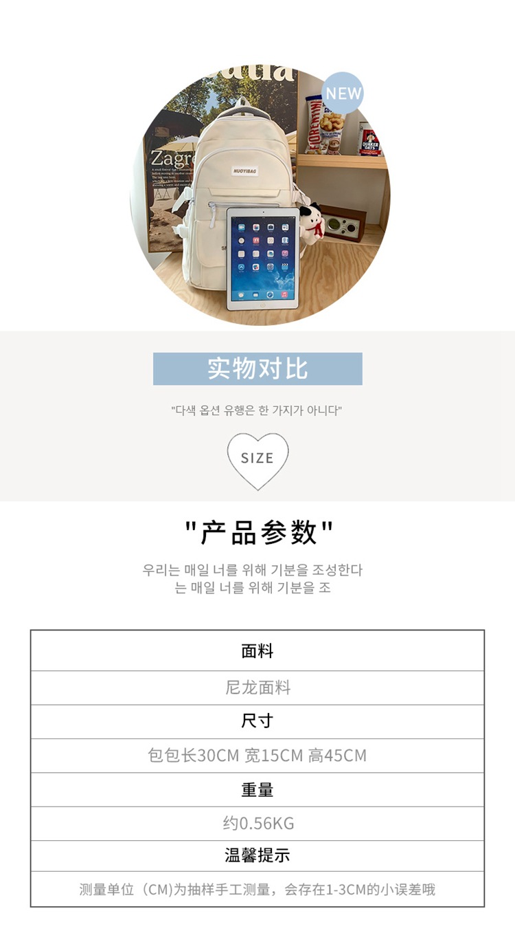 한국식 배낭 여성용 단색 단순 대용량 하라주쿠 배낭 일본식 식 Ins 스타일 중학생 캐주얼 스쿨백
