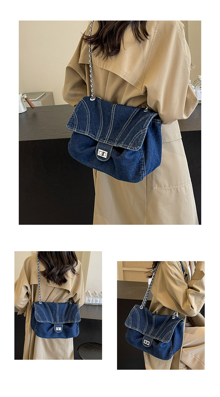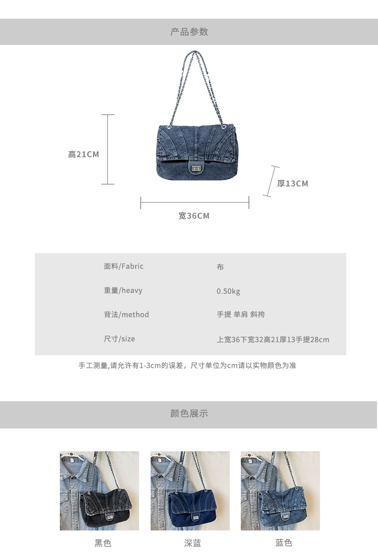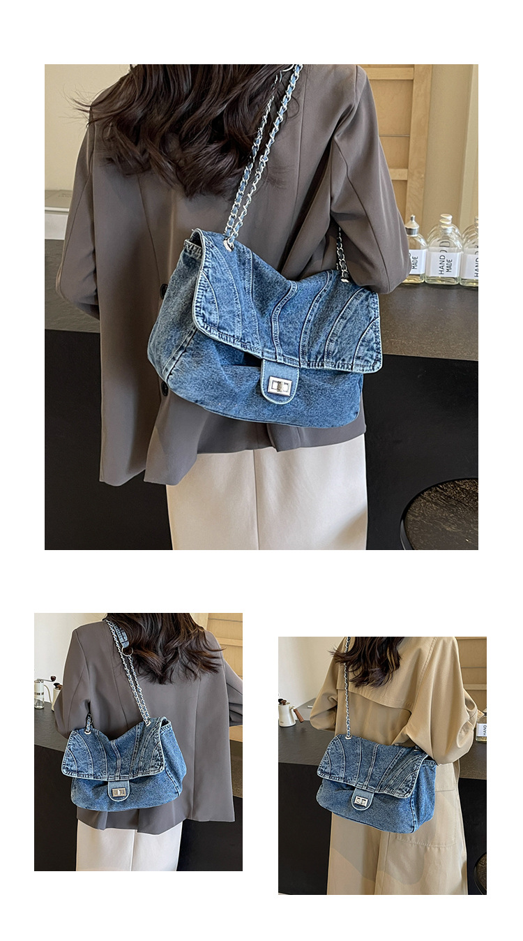 세탁 된 데님 가방 여성의 2024 새로운 유행 올 매치 체인 언더암 가방 대용량 통근 숄더 토트 백스토어 가기
