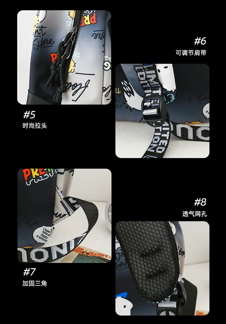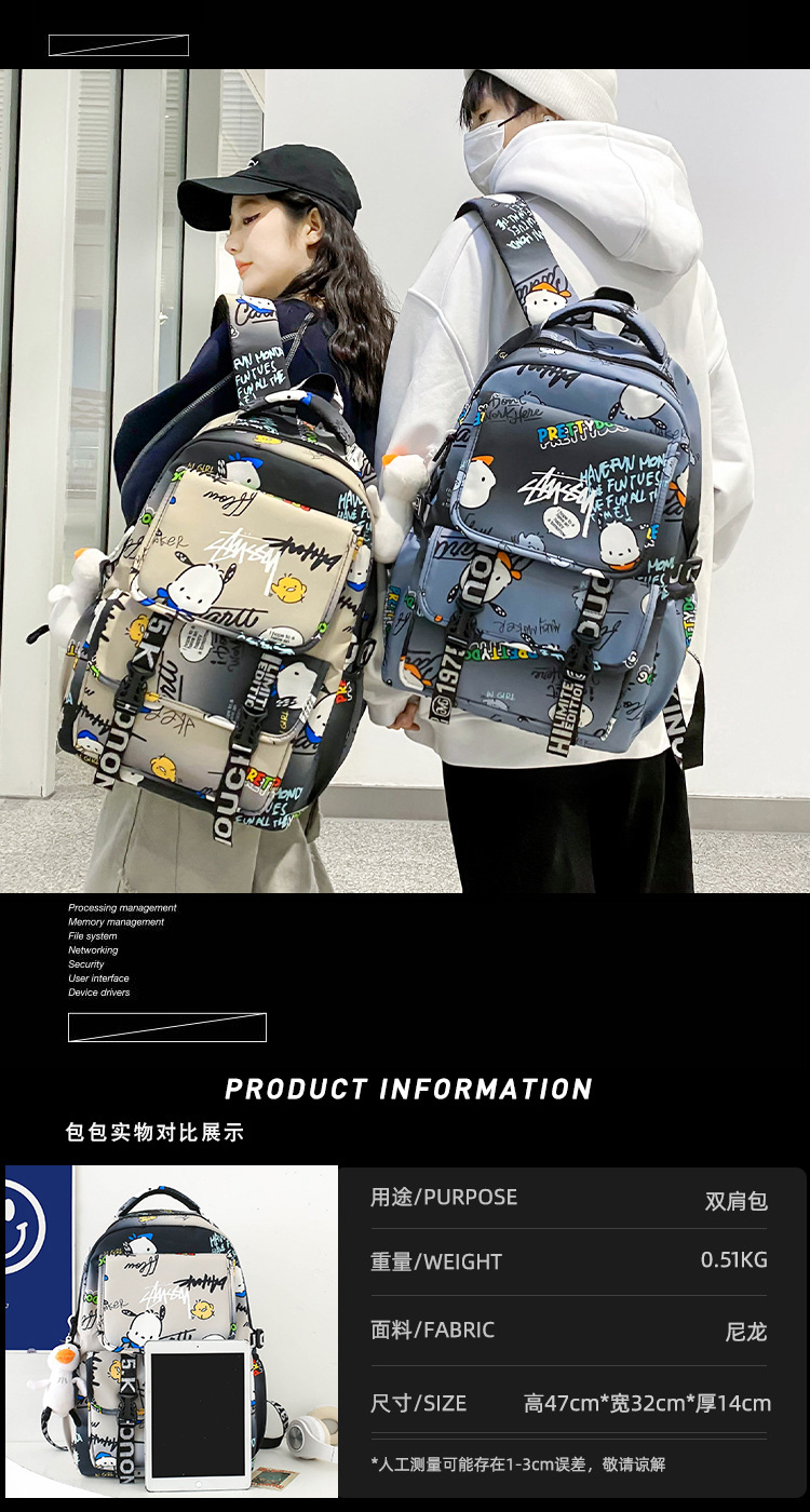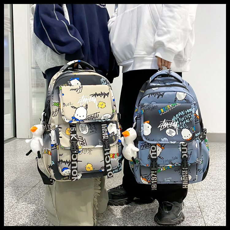 Schoolbag 남성 Ins 트렌디 쿨 패션 그래피티 센스 대용량 배낭 주니어 고등학교 대학생 배낭 여성스토어 가기