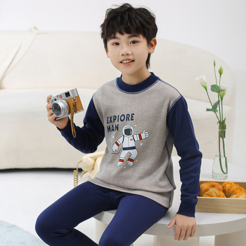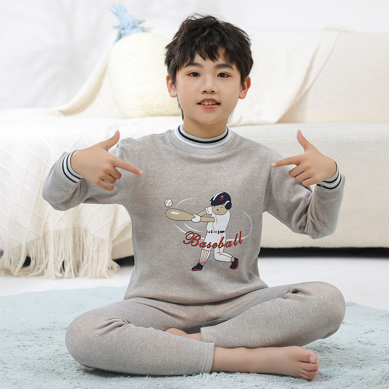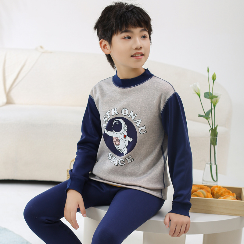 새로운 청소년 벨벳 두꺼운 가을, 겨울 따뜻한 속옷 세트 겨울 소년 중간 칼라 가을 옷과 가을 바지 가정 의류스토어 가기
