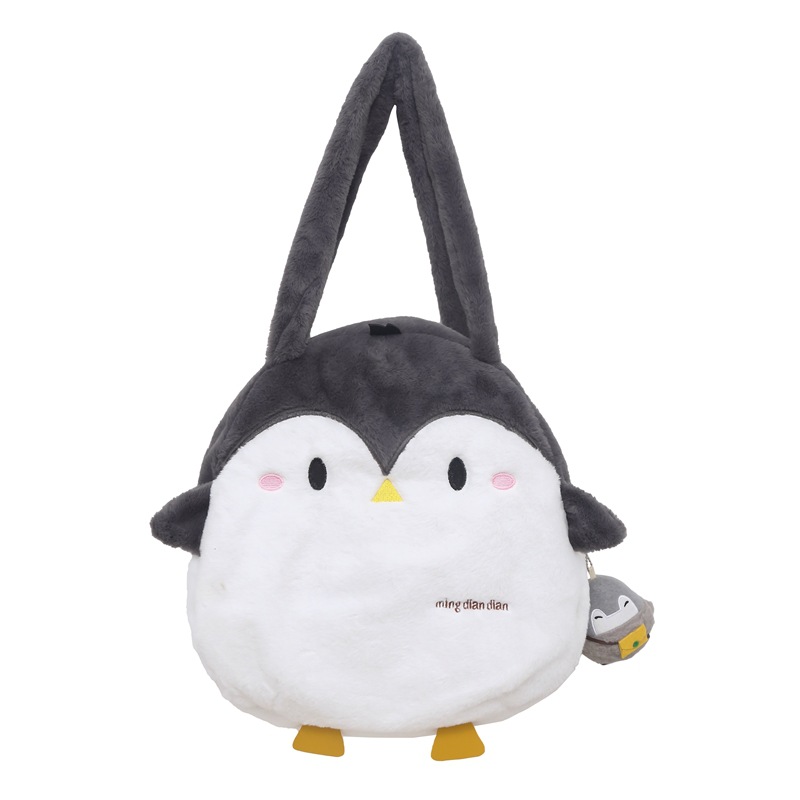 일본 겨울 새로운 봉제 어깨 가방 학생 남성 클래스 가방 대용량 귀여운 펭귄 통근 핸드백