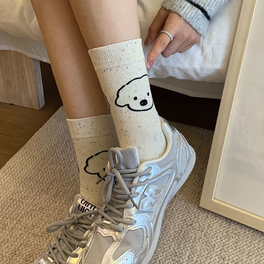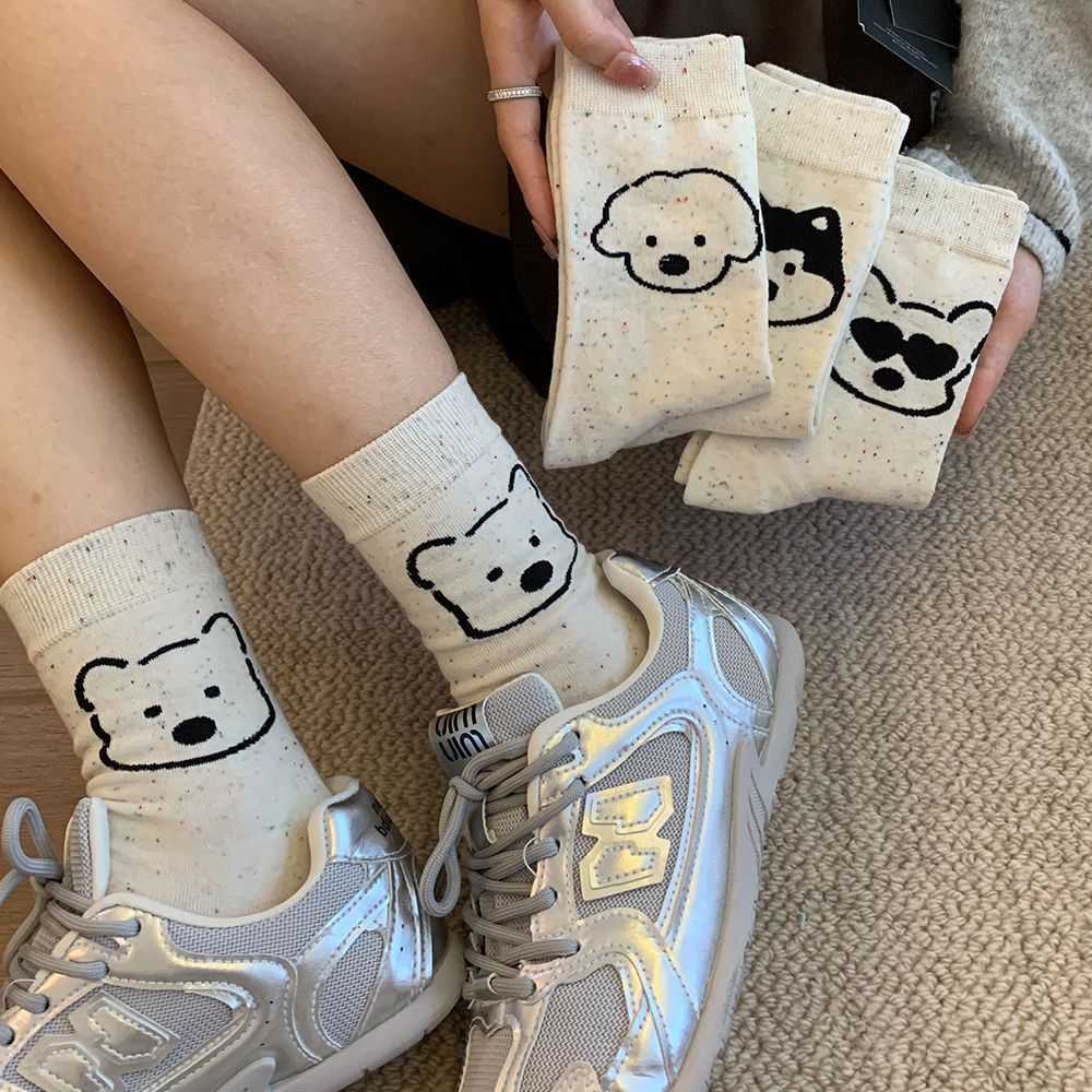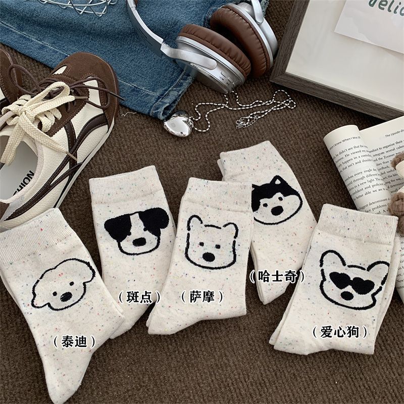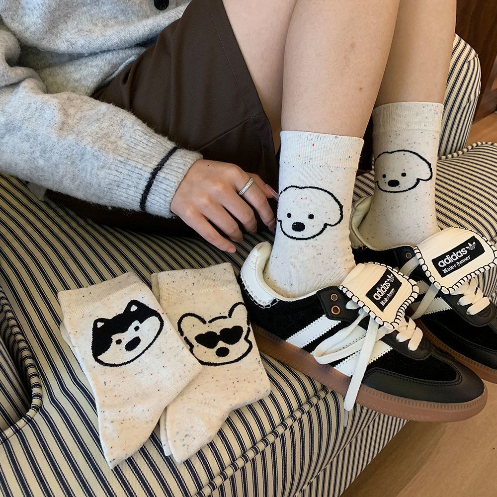 Ins Idea Puppy 양말 여자 중간 배럴 봄과 가을 일본 귀여운 올 매치 스포츠 학생 스타킹