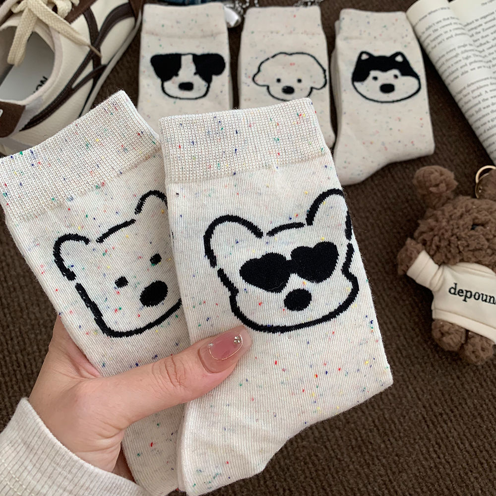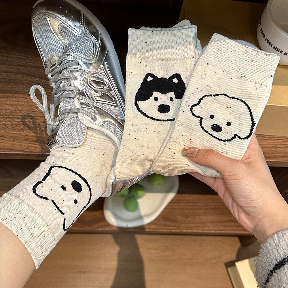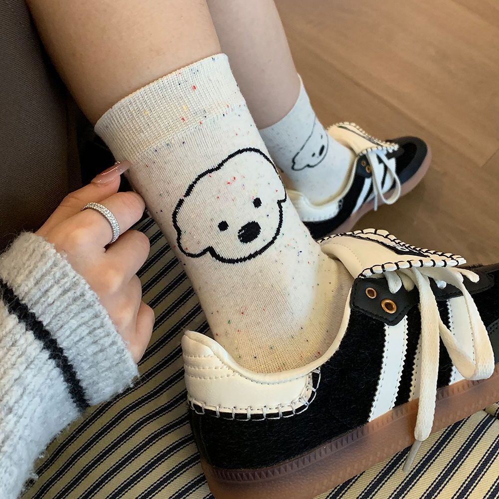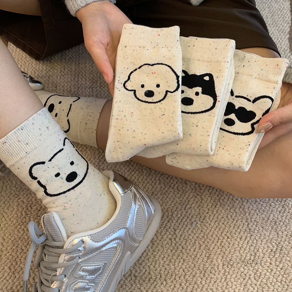 Ins Idea Puppy 양말 여자 중간 배럴 봄과 가을 일본 귀여운 올 매치 스포츠 학생 스타킹