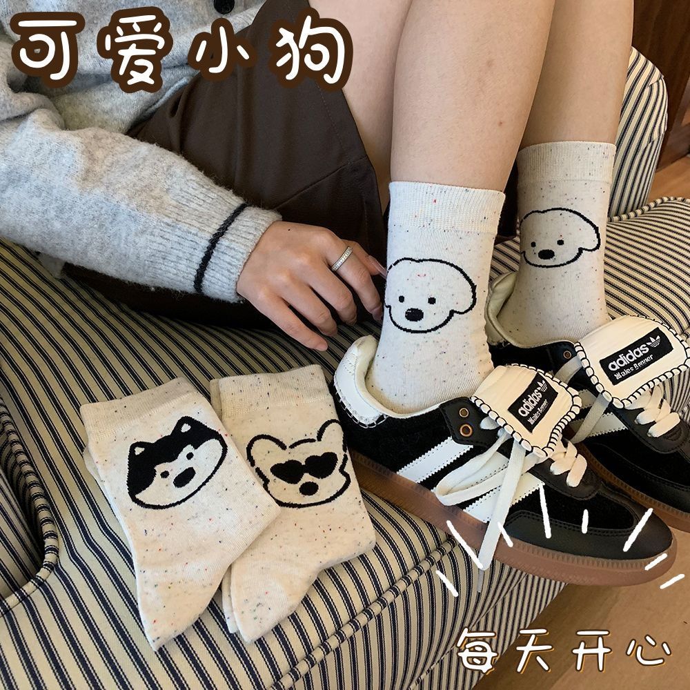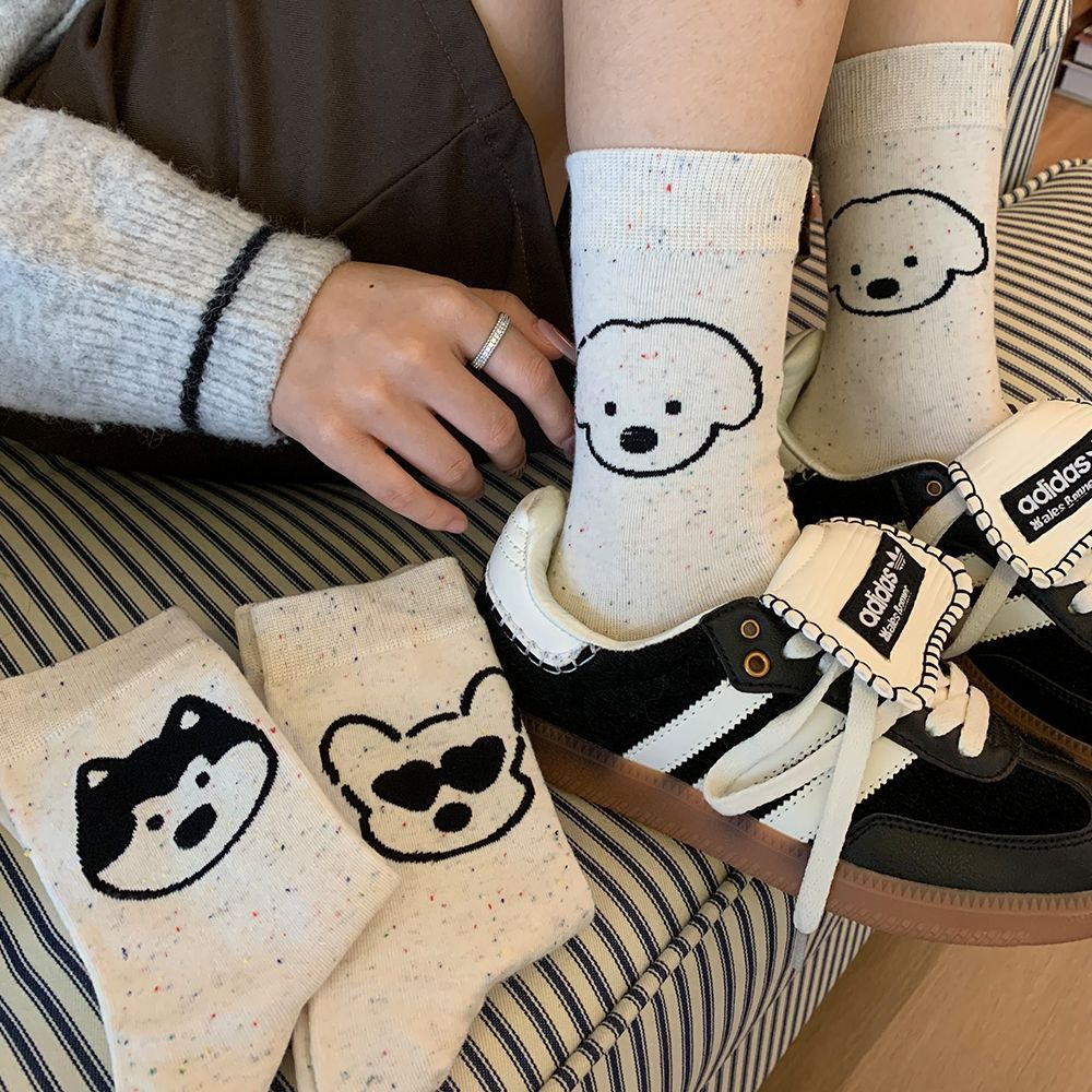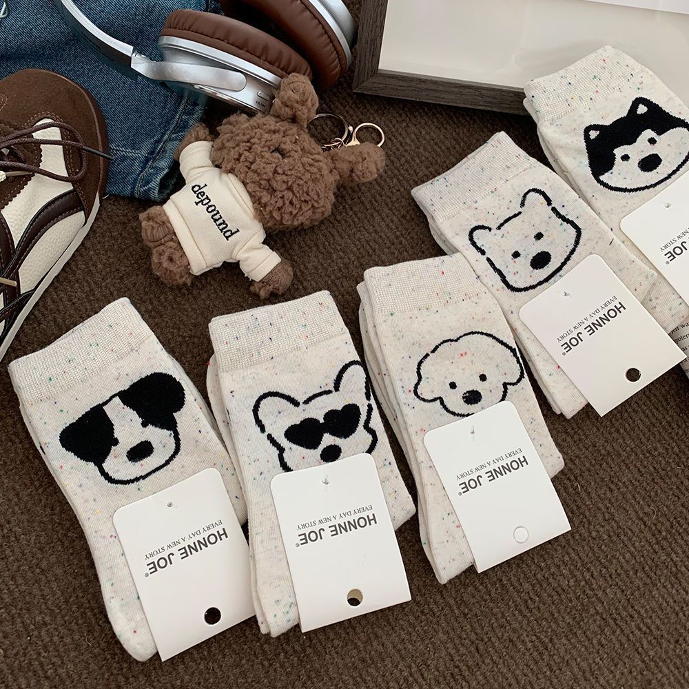 Ins Idea Puppy 양말 여자 중간 배럴 봄과 가을 일본 귀여운 올 매치 스포츠 학생 스타킹스토어 가기
