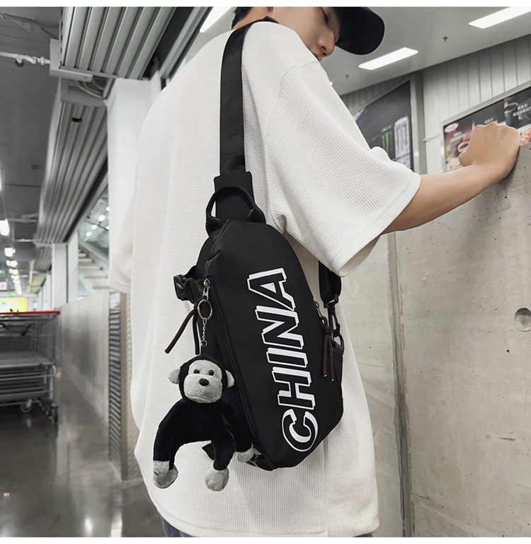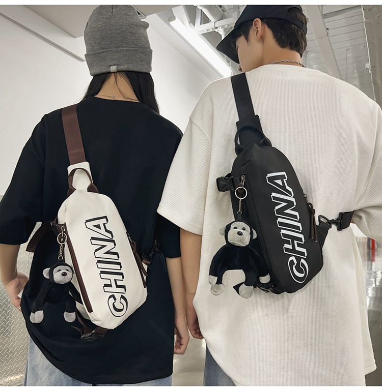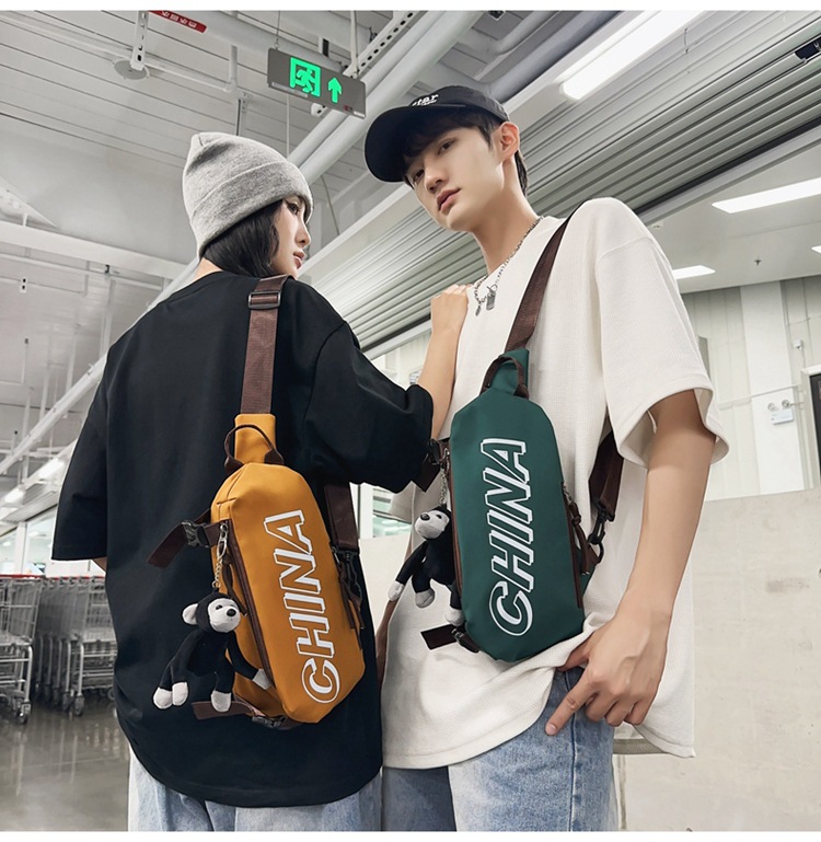 간단한 올 매치 가슴 가방 남자 Ins 새로운 유행 스포츠 학생 어깨 가방 여성 캐주얼 편지 작은 사첼 여성