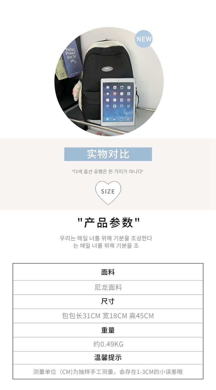 대용량 일본 배낭 여성 고등학생 솔리드 컬러 신선한 스쿨백 여성 한국 스타일 캠퍼스 간단한 여행 배낭스토어 가기