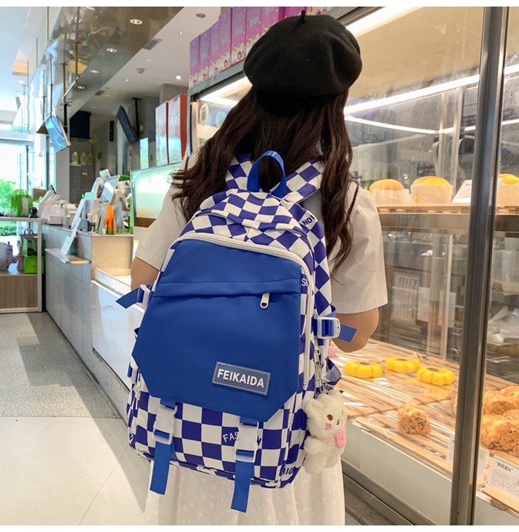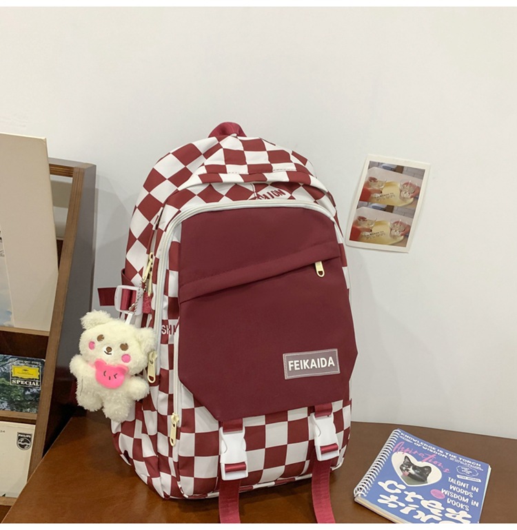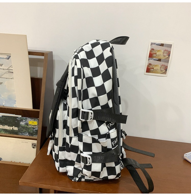 국경 간 새로운 고등학교 학생 학교 가방 레저 여행 배낭 유행 멋진 패션 체스보드 체크 배낭 도매스토어 가기