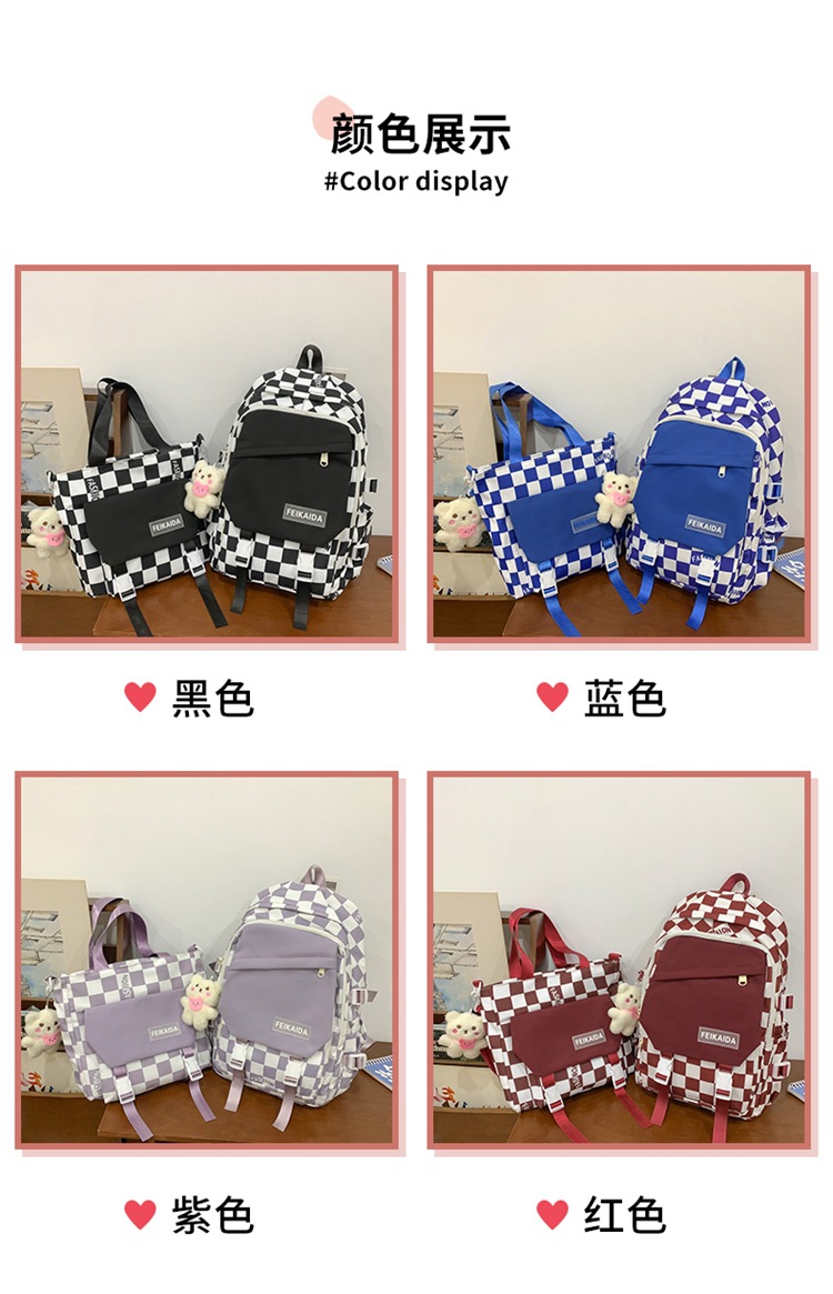 국경 간 새로운 고등학교 학생 학교 가방 레저 여행 배낭 유행 멋진 패션 체스보드 체크 배낭 도매