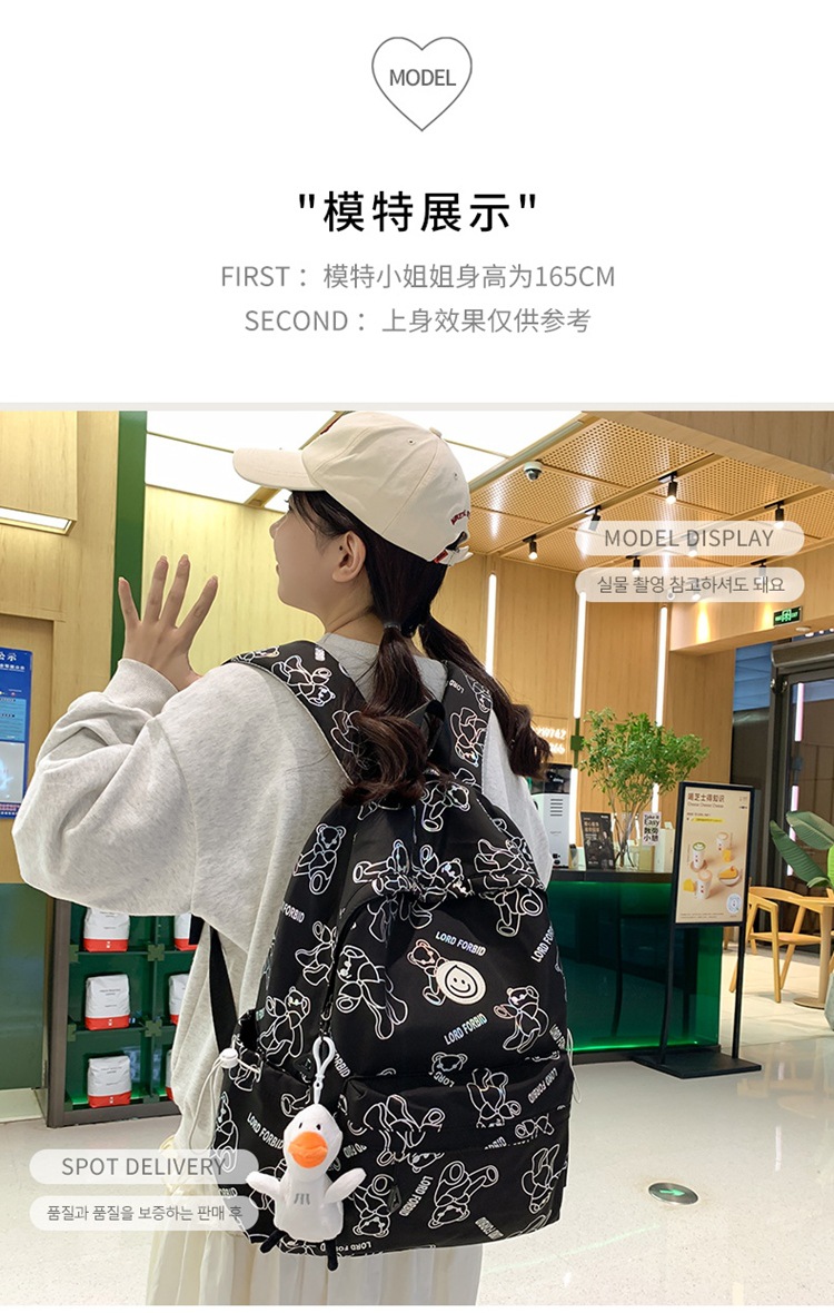 국경 간 일본인학교 가방 중학생 고가치 곰 배낭 대용량 대학생 여행 배낭