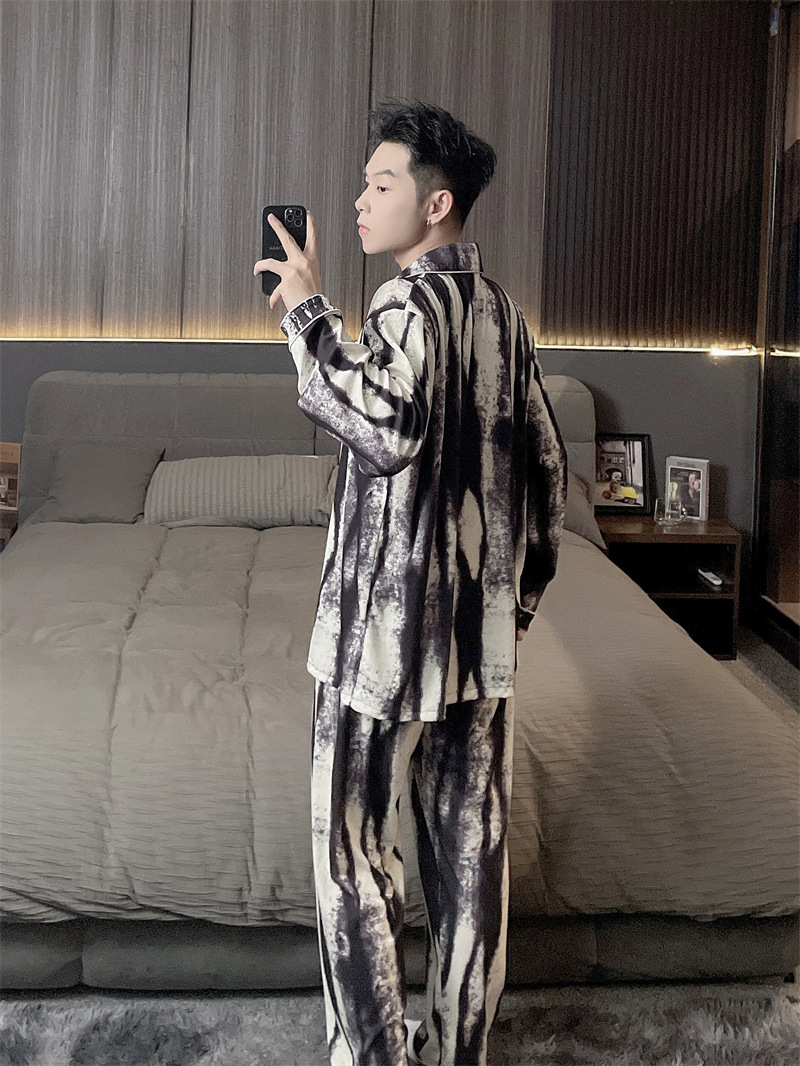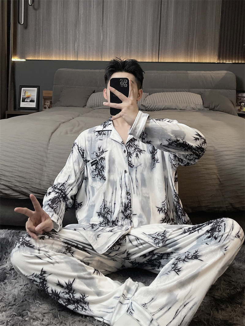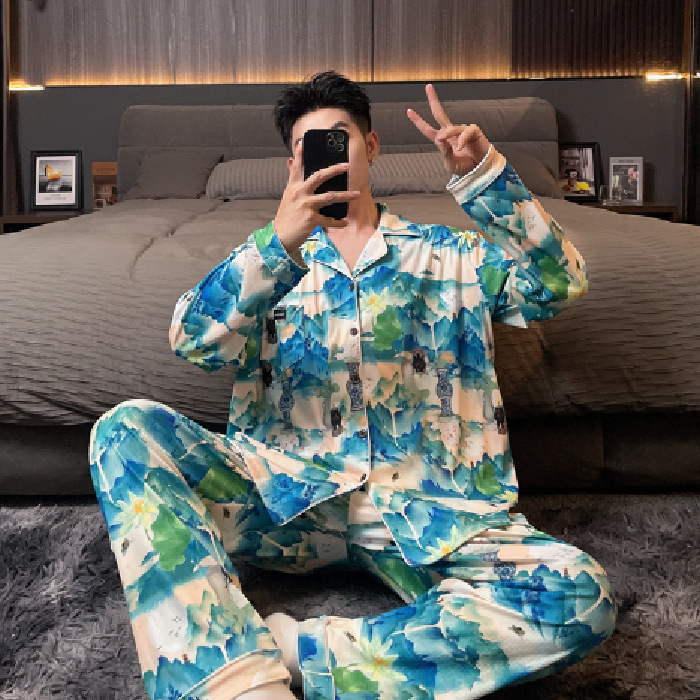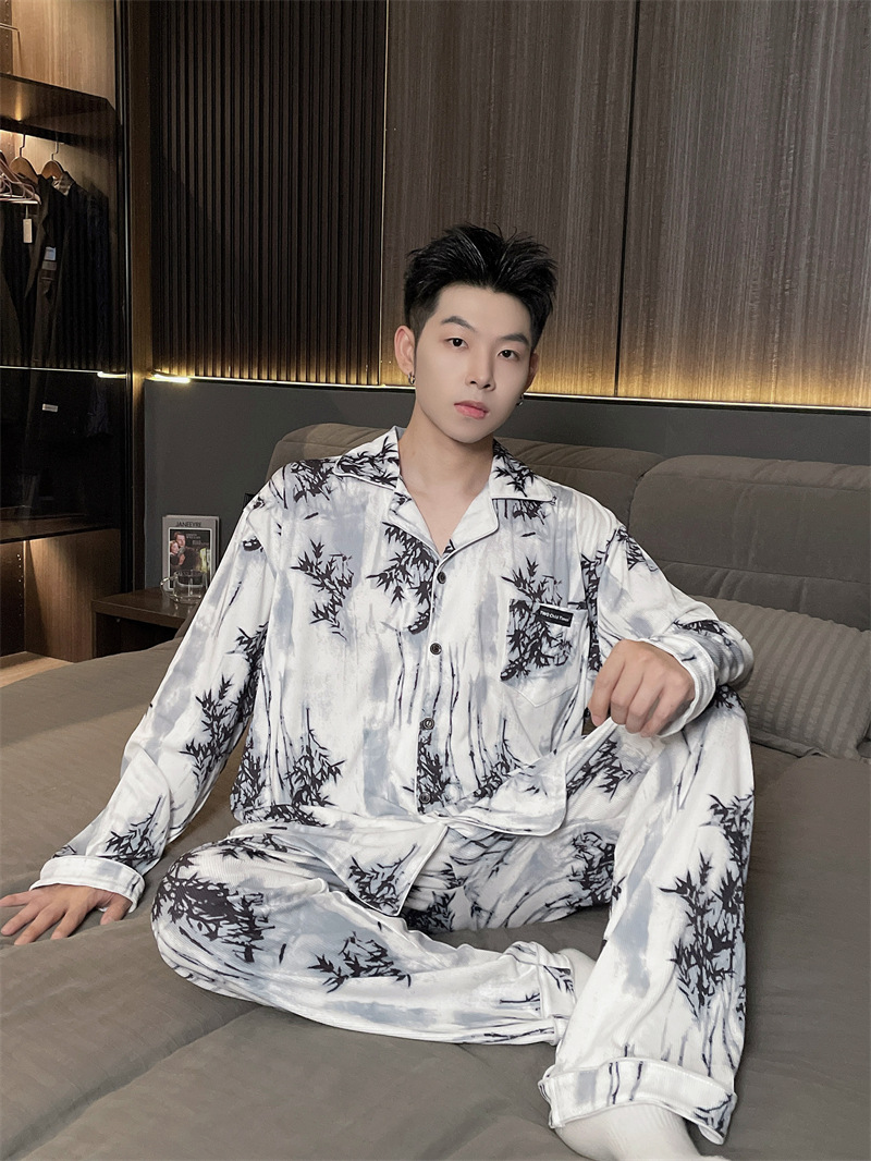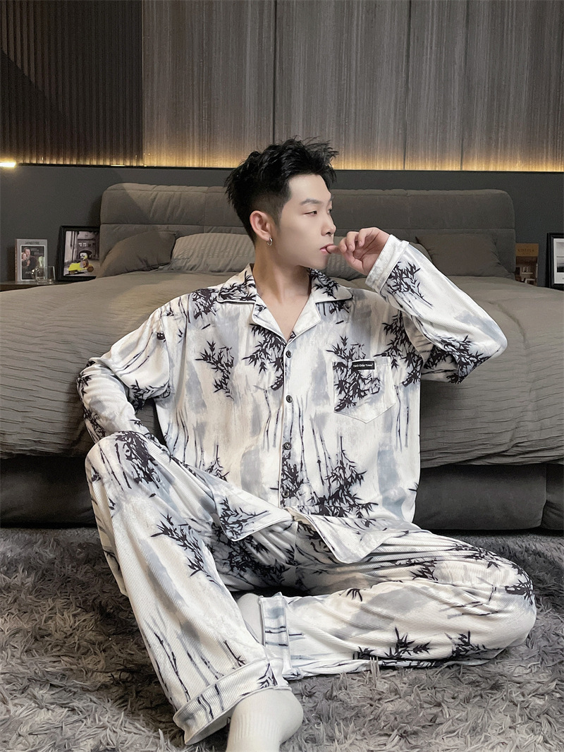 잠옷 남성 가을과 겨울 벨벳 따뜻한 플러스 살찐 플러스 사이즈 300kg 지방 느슨한 녹색 중년 가정 의류 세트스토어 가기