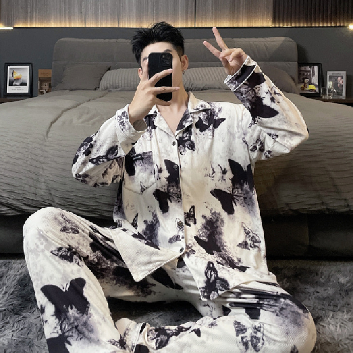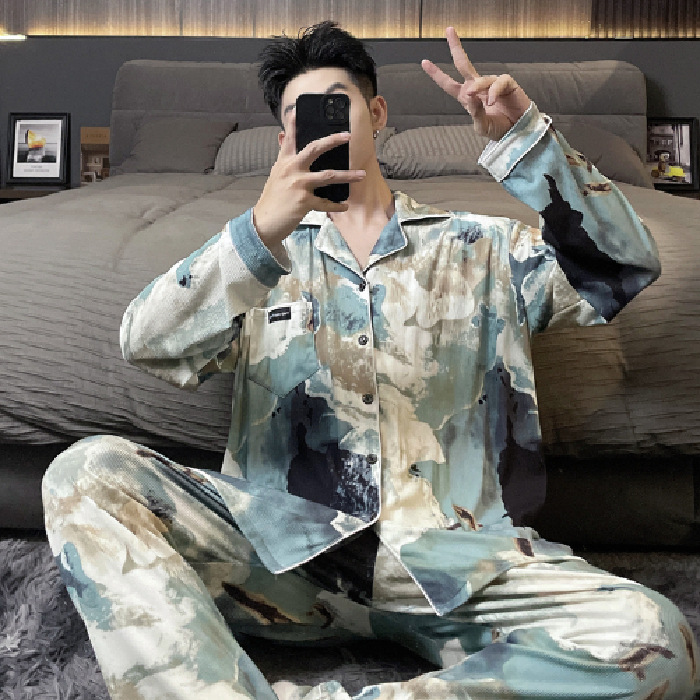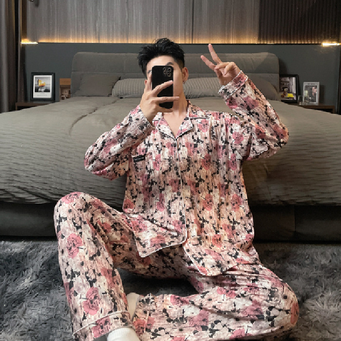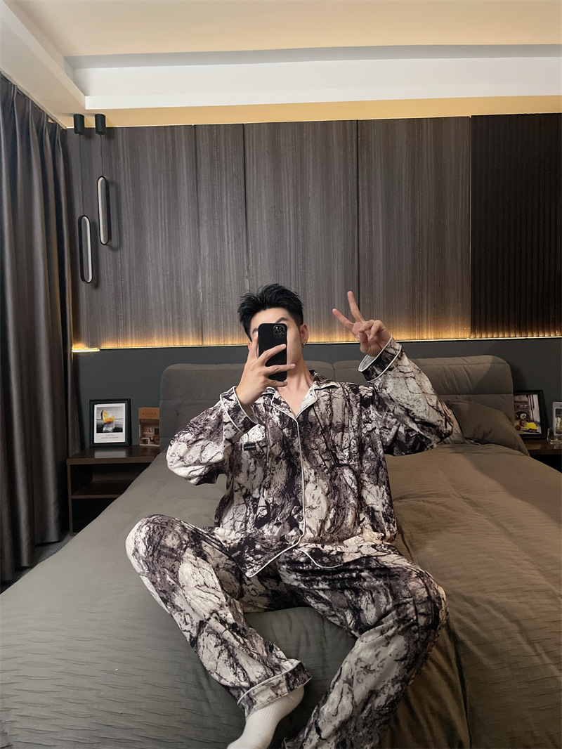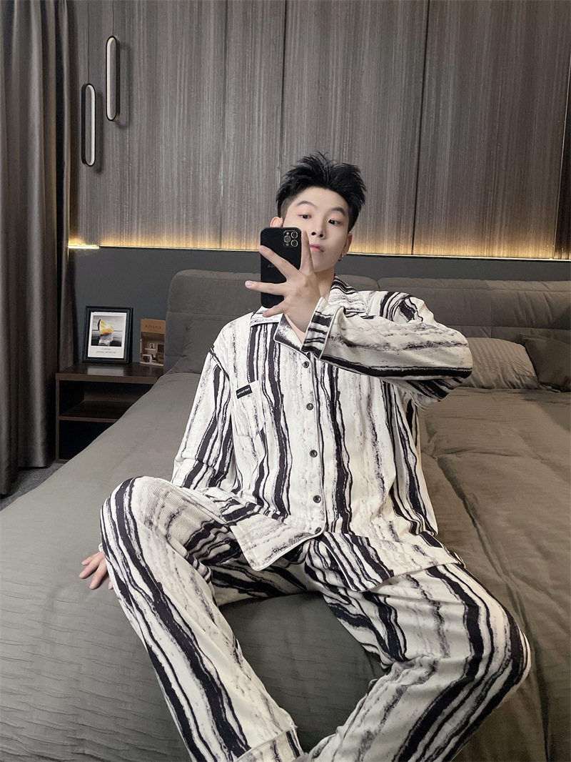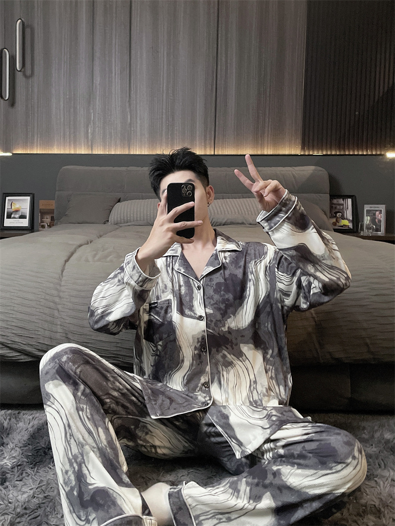 잠옷 남성 가을과 겨울 벨벳 따뜻한 플러스 살찐 플러스 사이즈 300kg 지방 느슨한 녹색 중년 가정 의류 세트스토어 가기