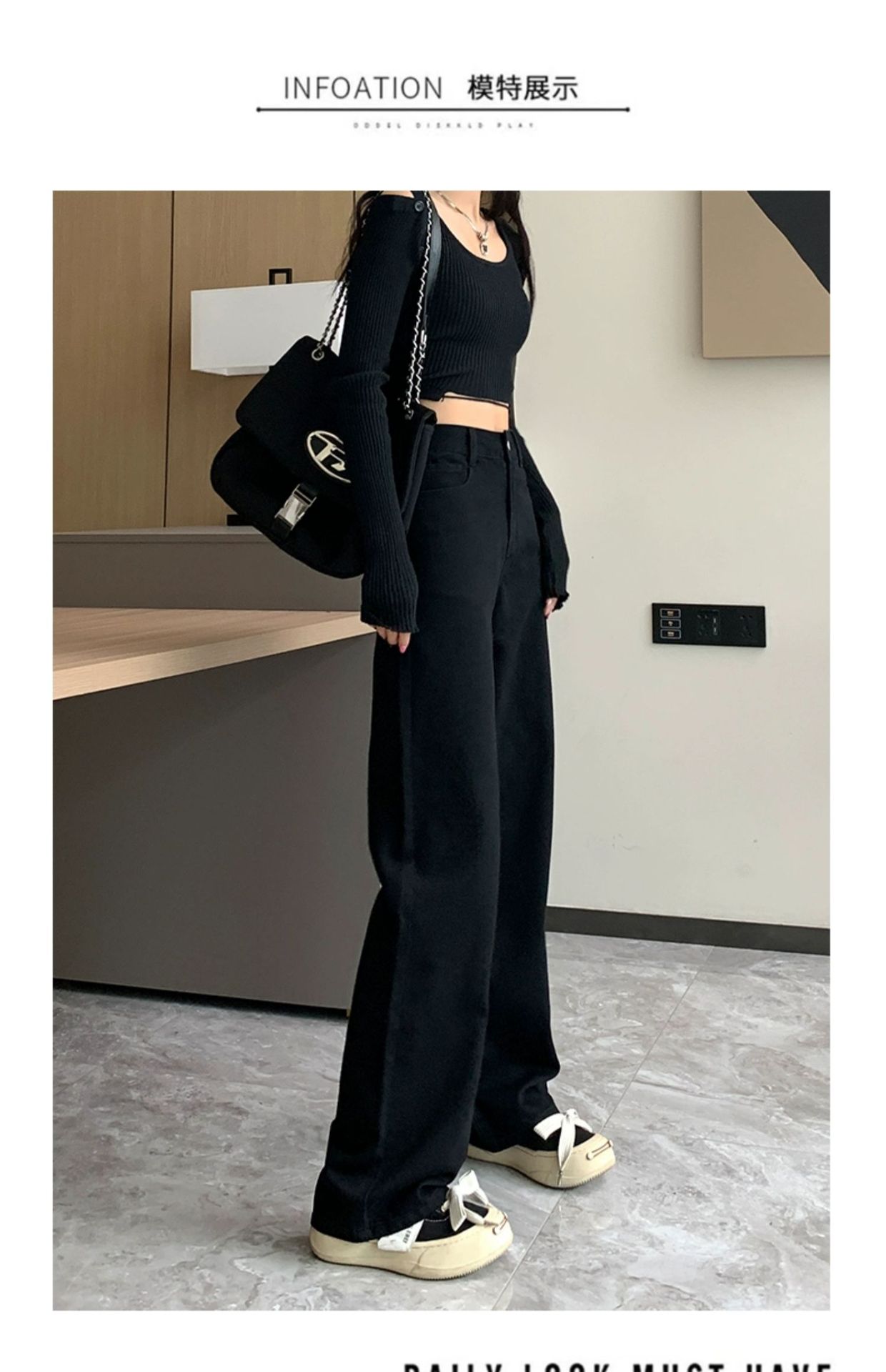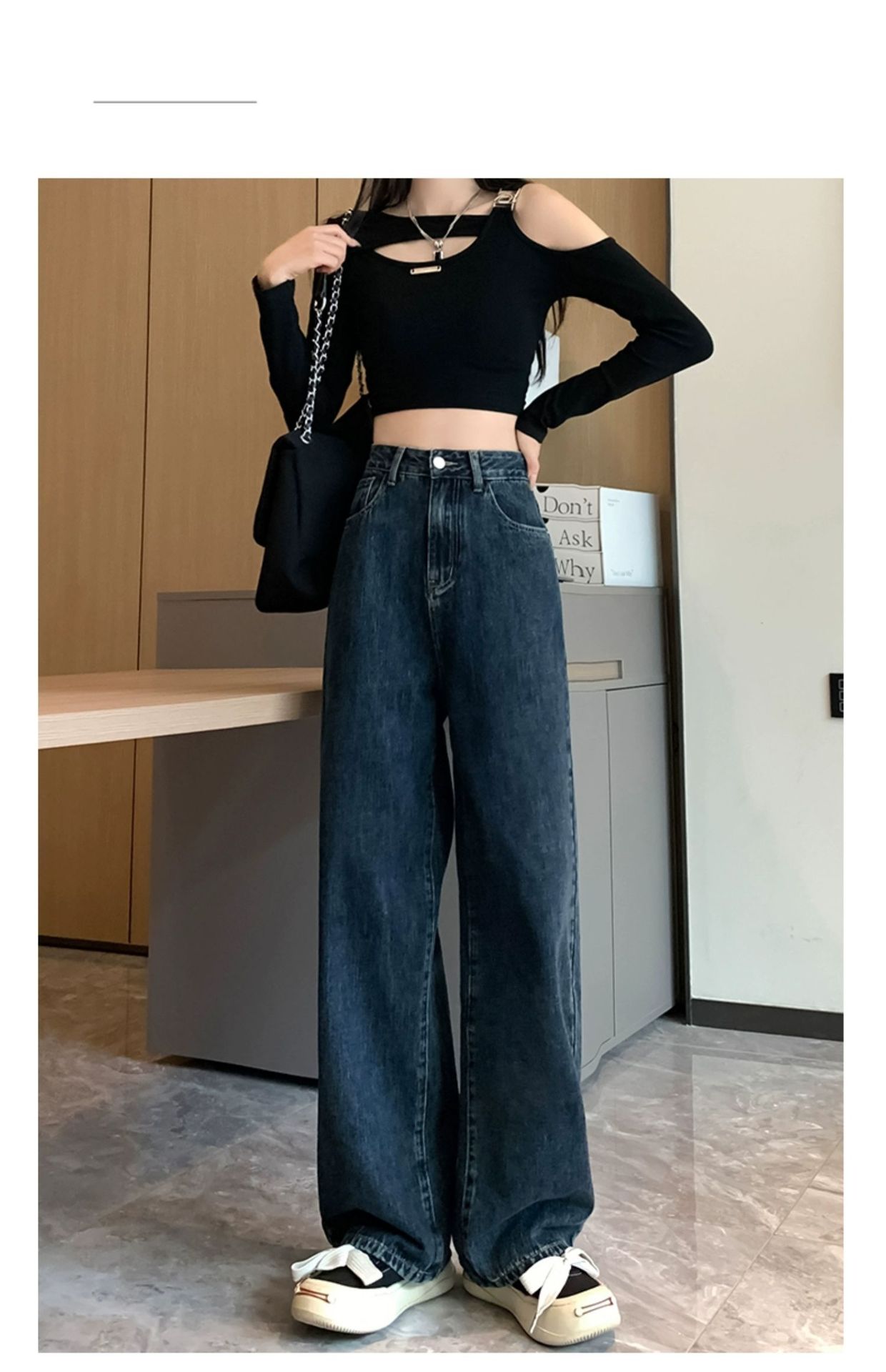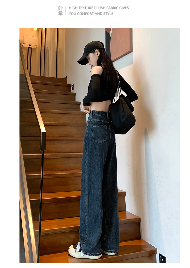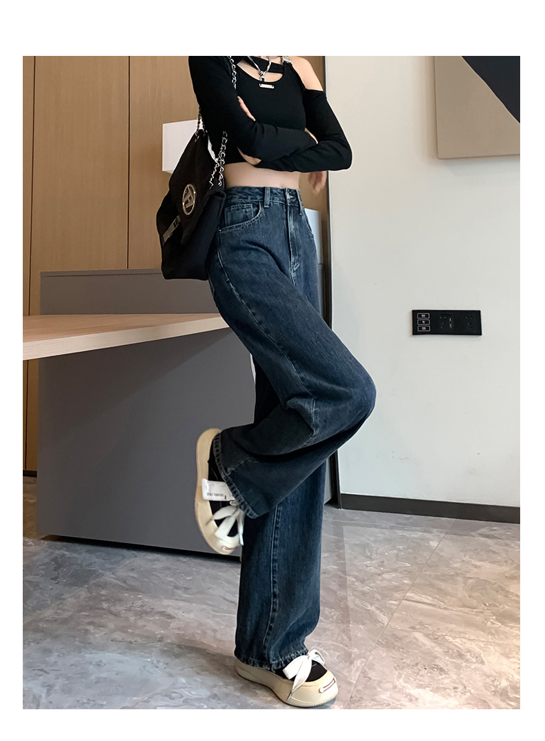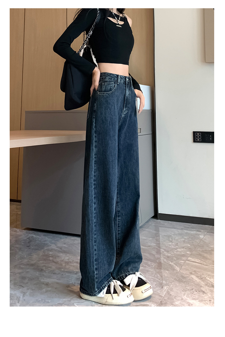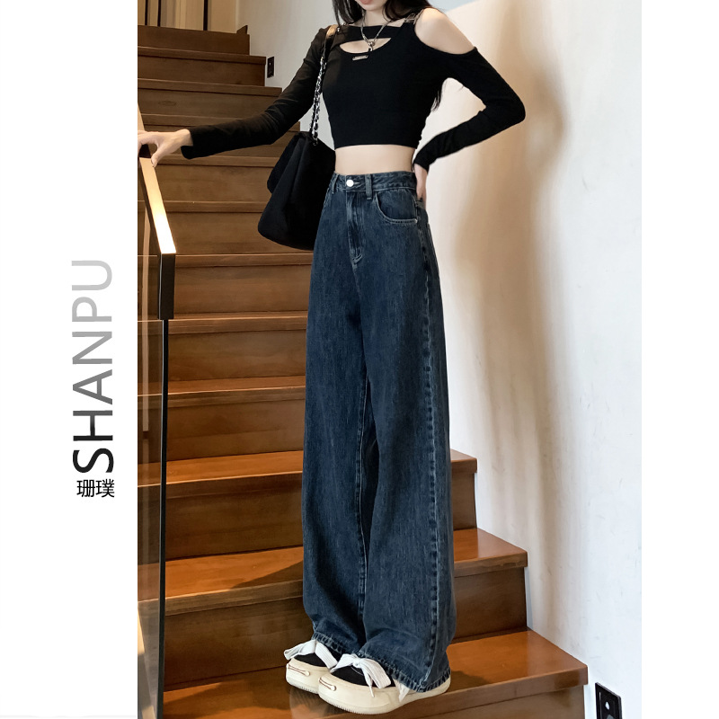 가을 2024 새로운 높은 허리 넓은 다리 청바지 여성의 느슨한 스트레이트 슬림 통통녀 배 모양의 몸 길이 바지스토어 가기