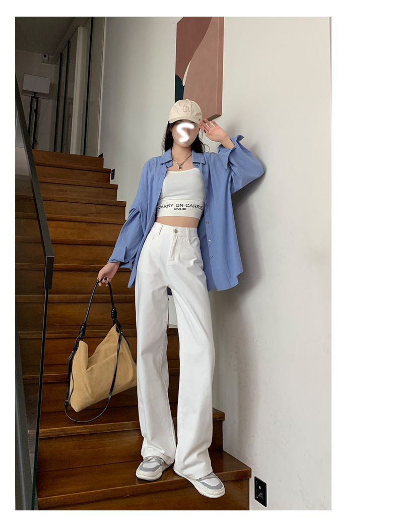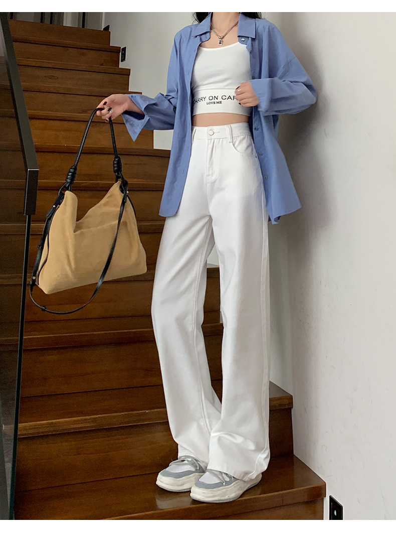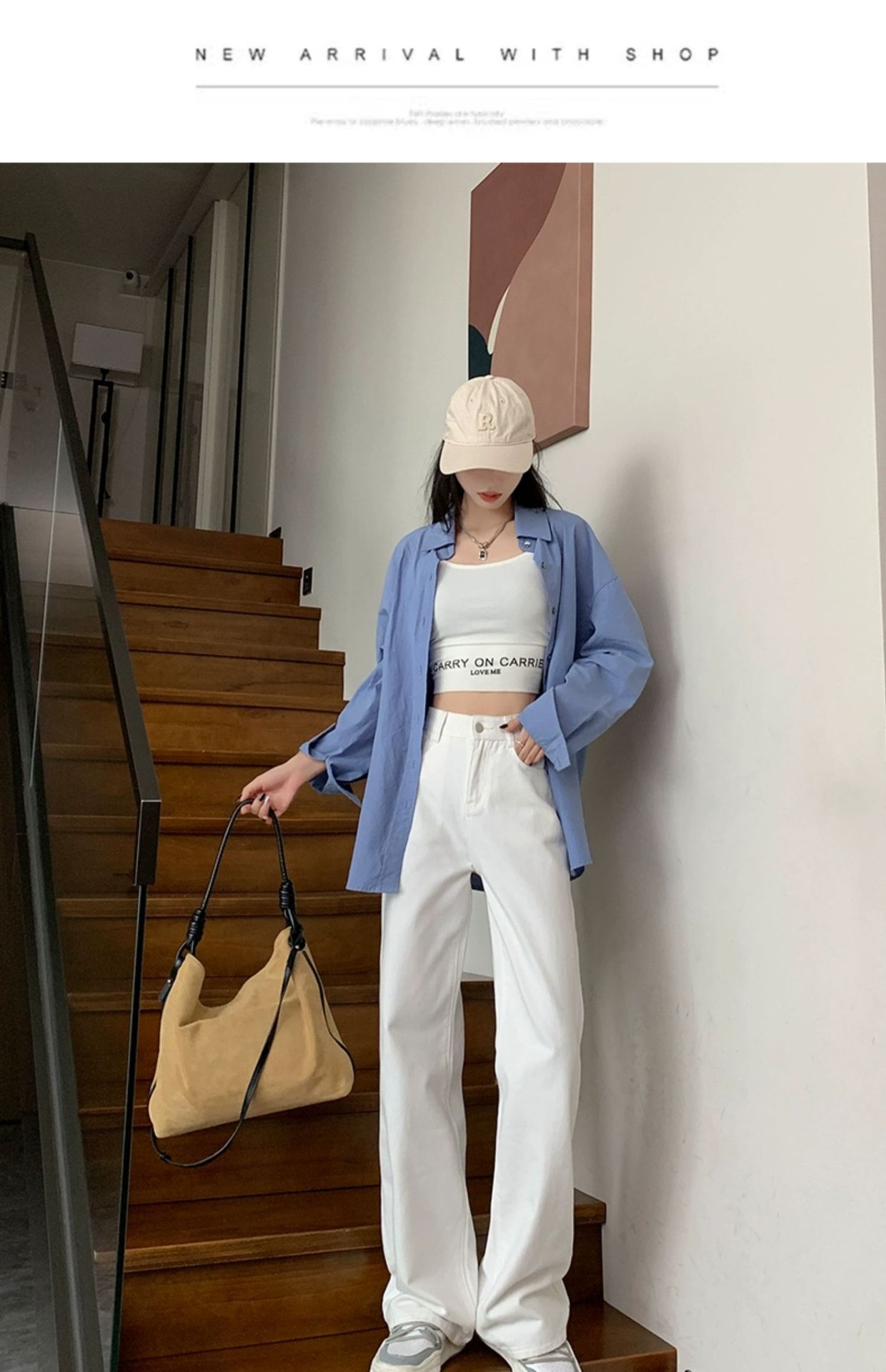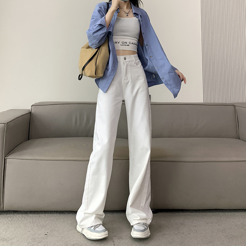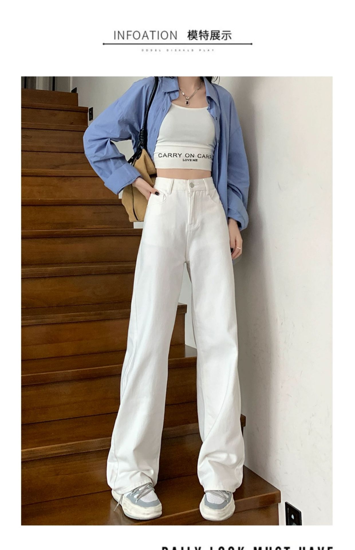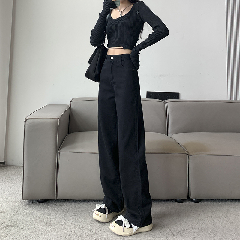 가을 2024 새로운 높은 허리 넓은 다리 청바지 여성의 느슨한 스트레이트 슬림 통통녀 배 모양의 몸 길이 바지스토어 가기