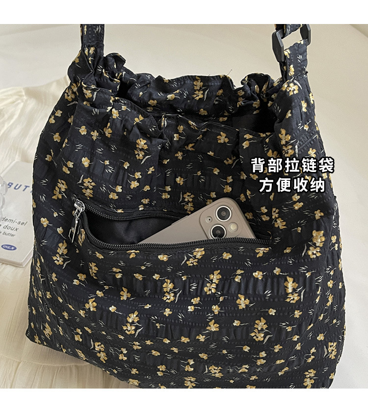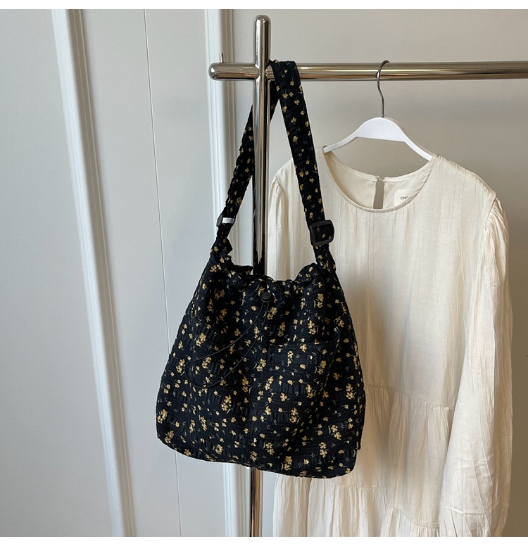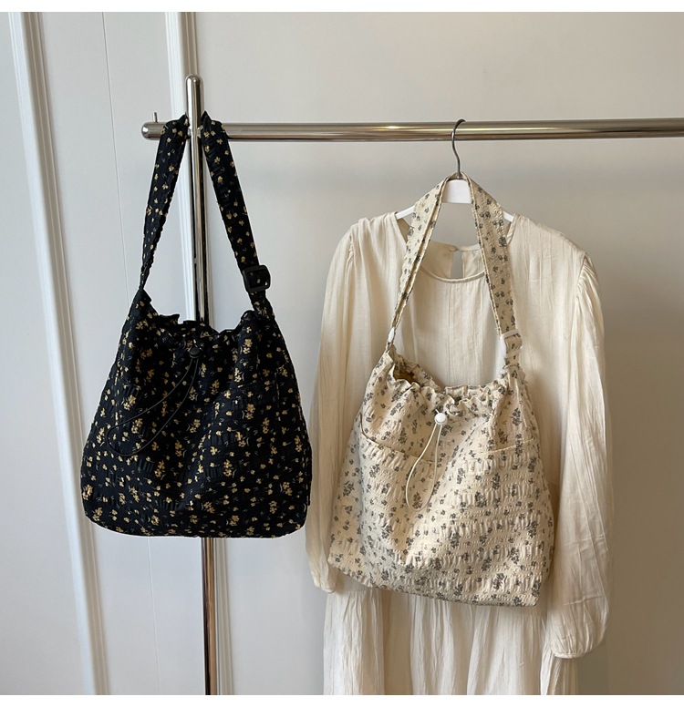 센스 대용량 주름 캔버스 가방 2024 새로운 신선한 꽃 가방 여름 올 매치 메신저 가방