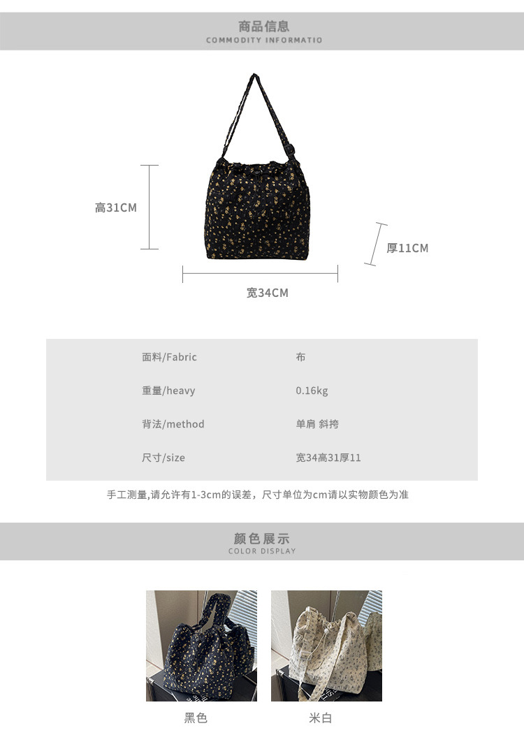 센스 대용량 주름 캔버스 가방 2024 새로운 신선한 꽃 가방 여름 올 매치 메신저 가방스토어 가기