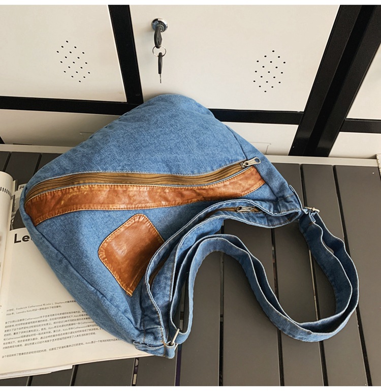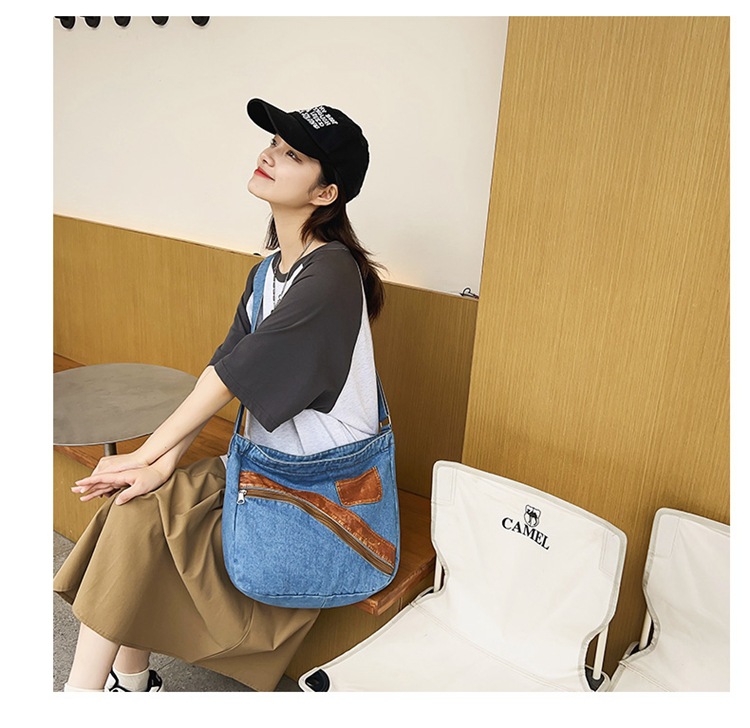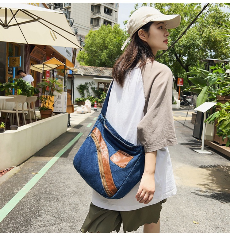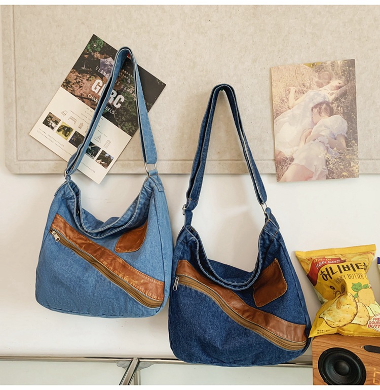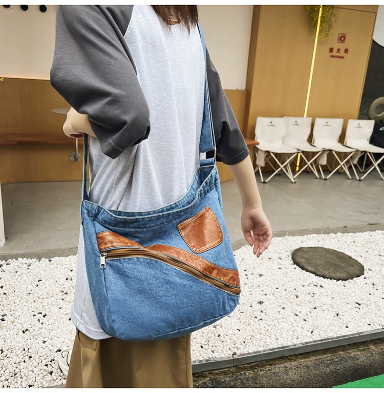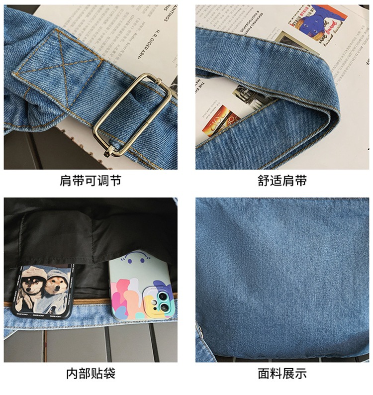 간단한 데님 어깨 가방 여성 2024 새로운 학생 대용량 크로스 바디 백 클래스 캔버스 메신저 백 도매스토어 가기