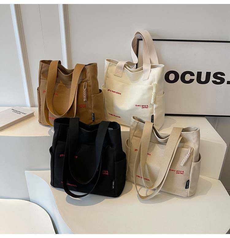 2024 가을 겨울 새로운 한국 스타일 틈새 대용량 캔버스 핸드백 여성 올 매치 통근 학생 어깨 가방스토어 가기