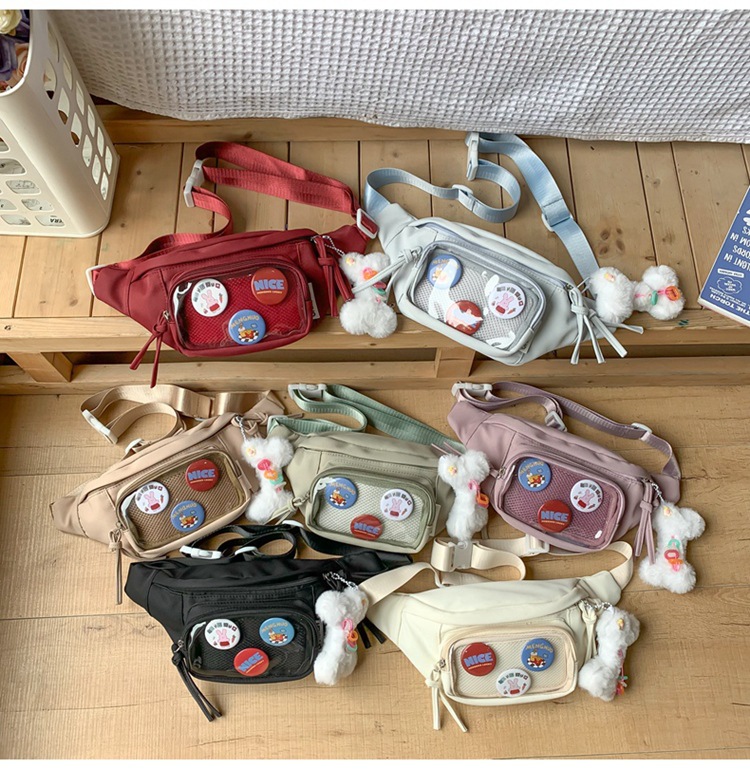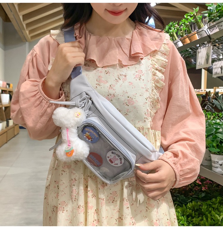투명한 허리 가방 새로운 일본식 소녀 크로스 바디 백 유행 귀여운 학생 가슴 가방 2 차 부드러운 자매 통증 가방스토어 가기