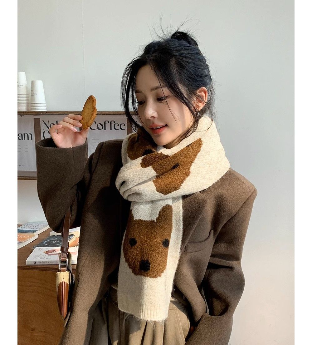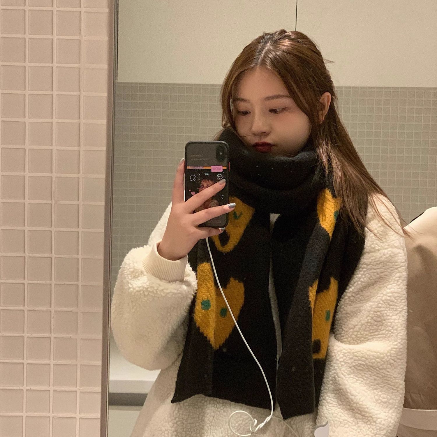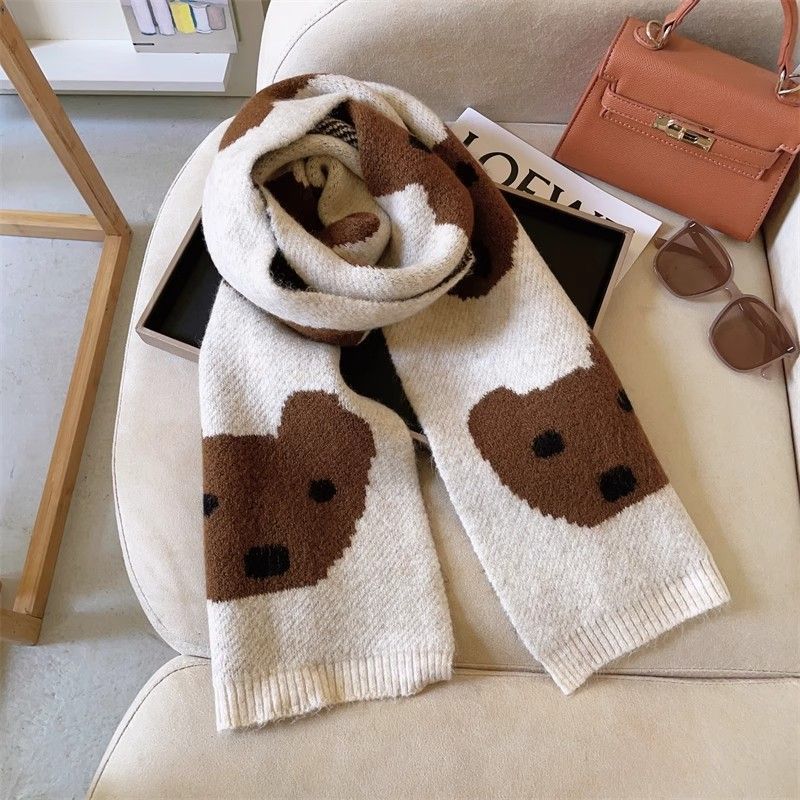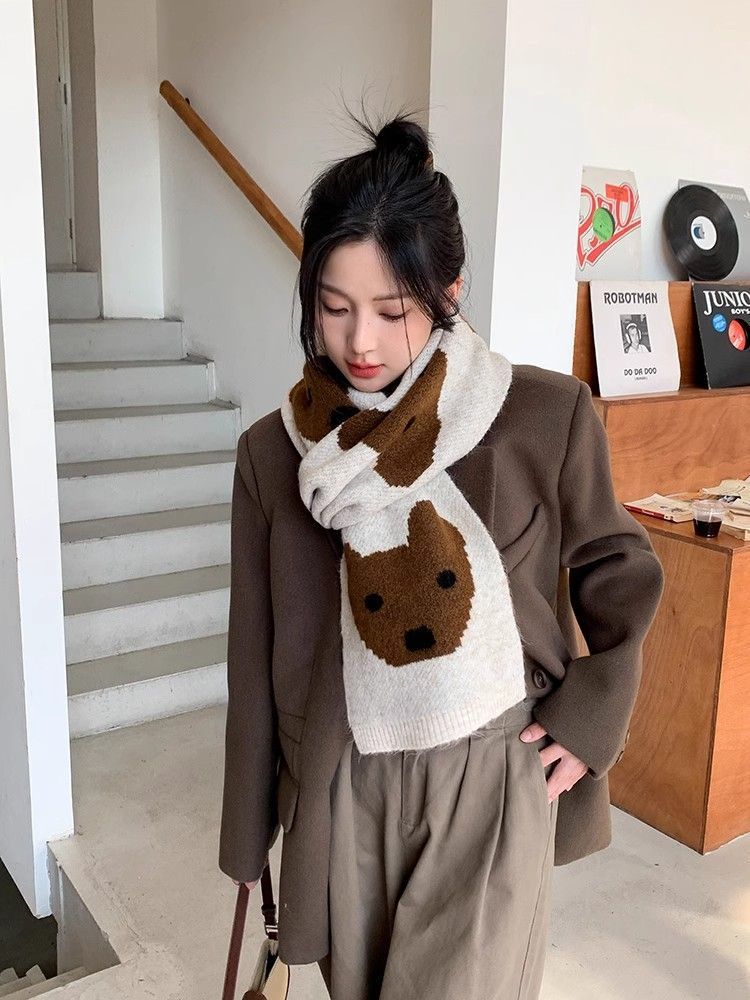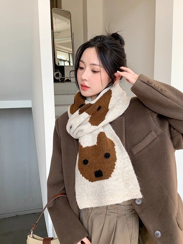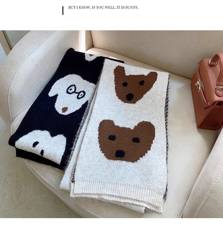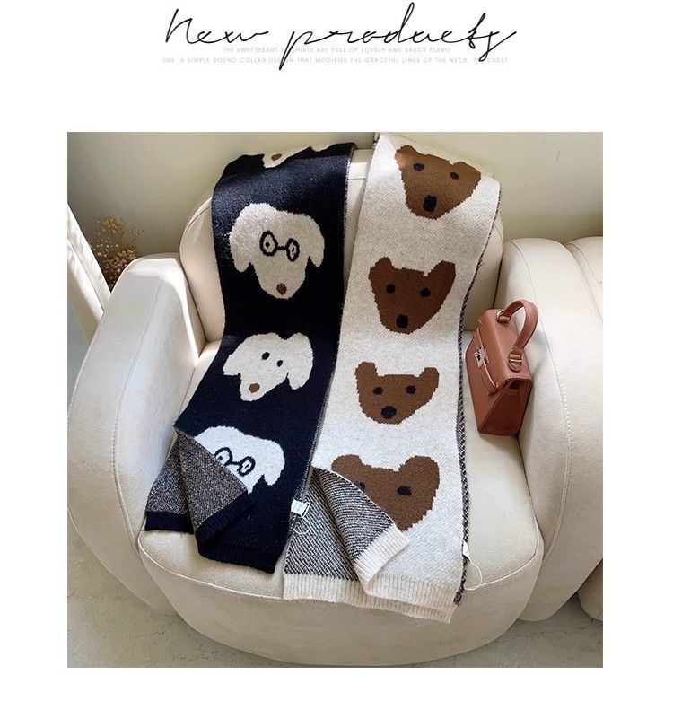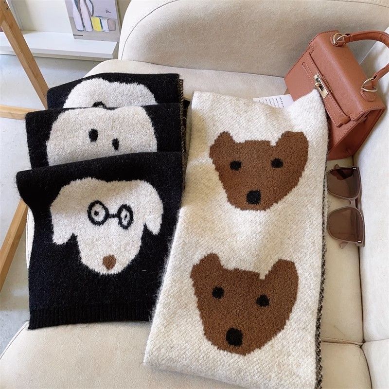 2024 새로운 귀여운 안경 강아지 패턴 학생 커플 쇼핑 조커 두꺼운 가을과 겨울 소녀 스카프 도매스토어 가기