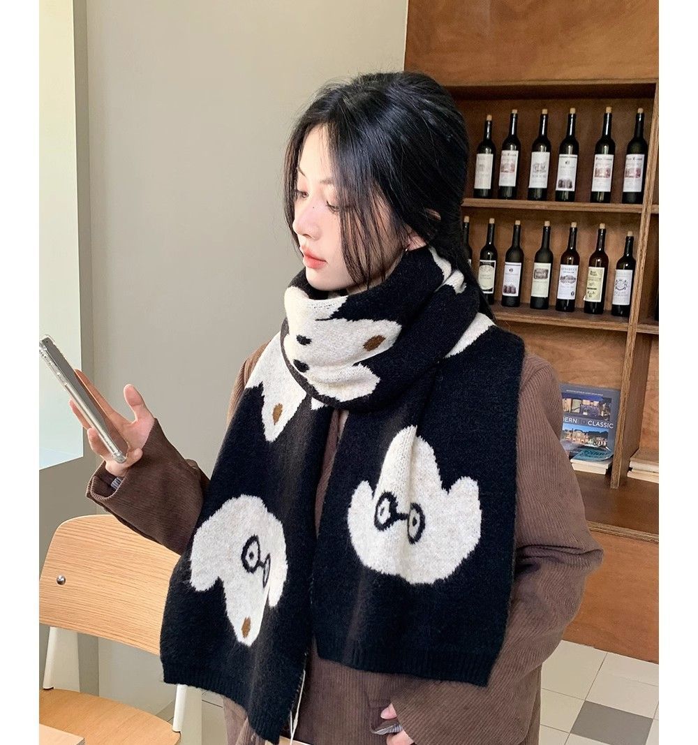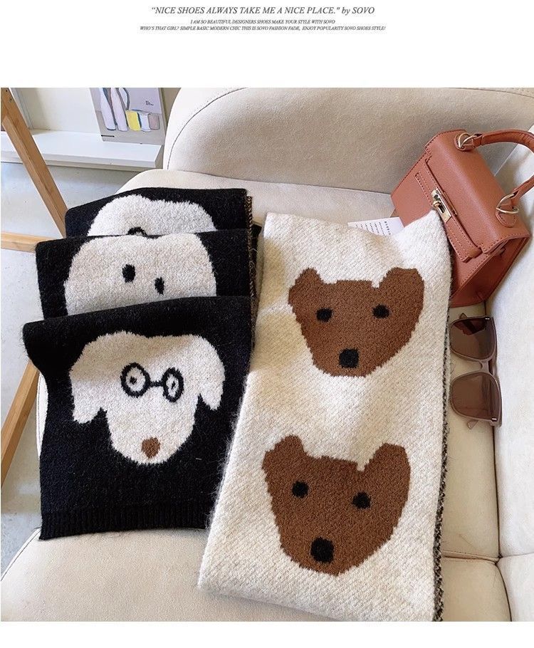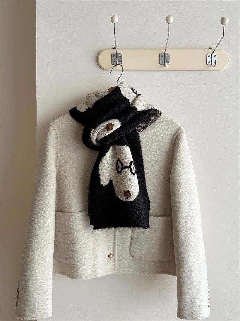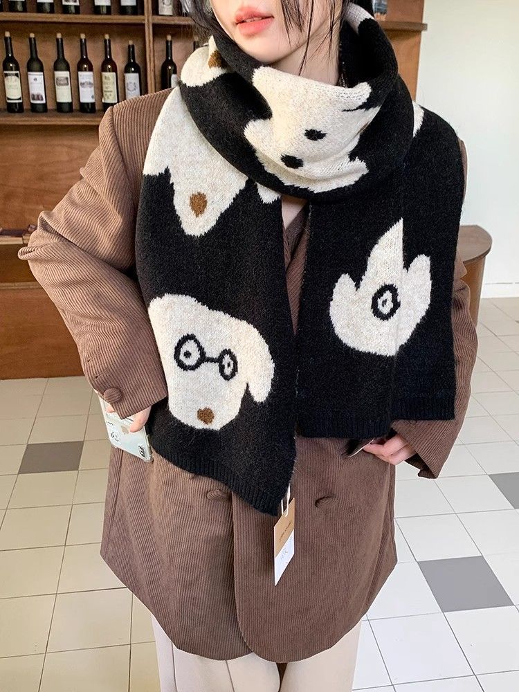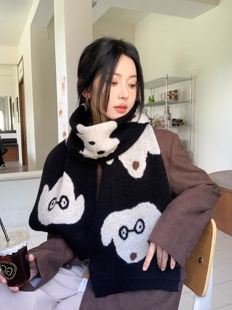 2024 새로운 귀여운 안경 강아지 패턴 학생 커플 쇼핑 조커 두꺼운 가을과 겨울 소녀 스카프 도매