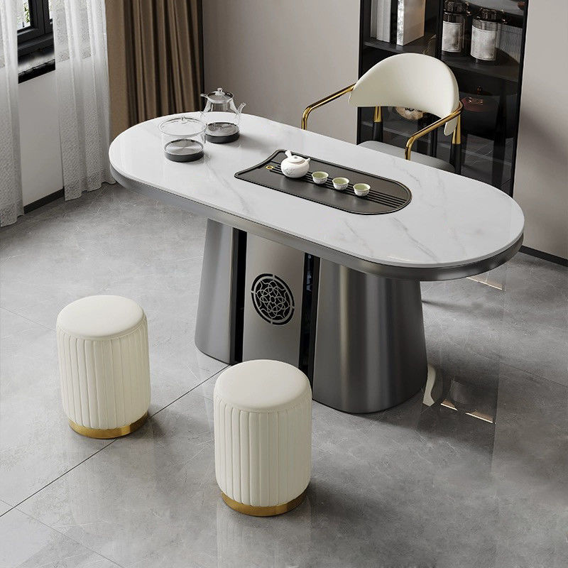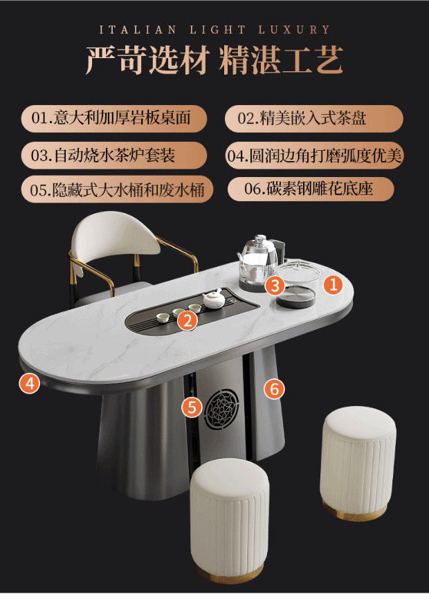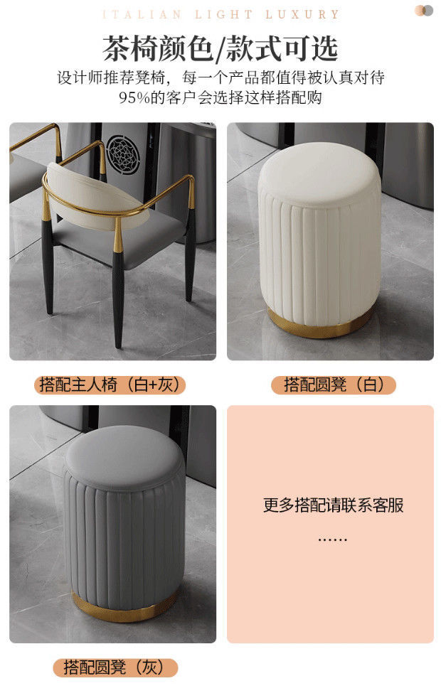 • 1.2m 티 테이블 + 가벼운 럭셔리 의자 1개, 원형 스툴 2개