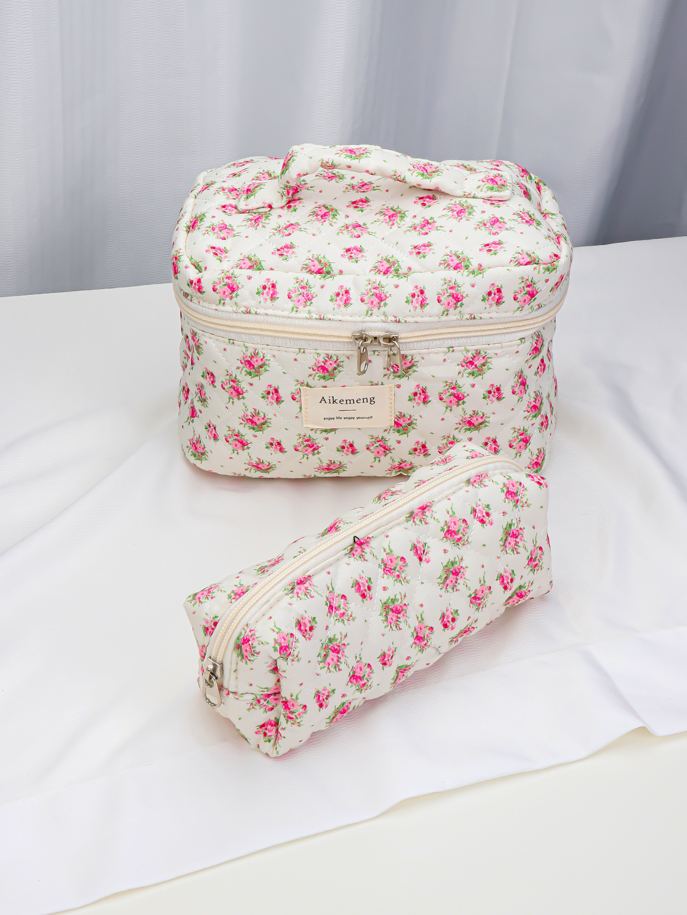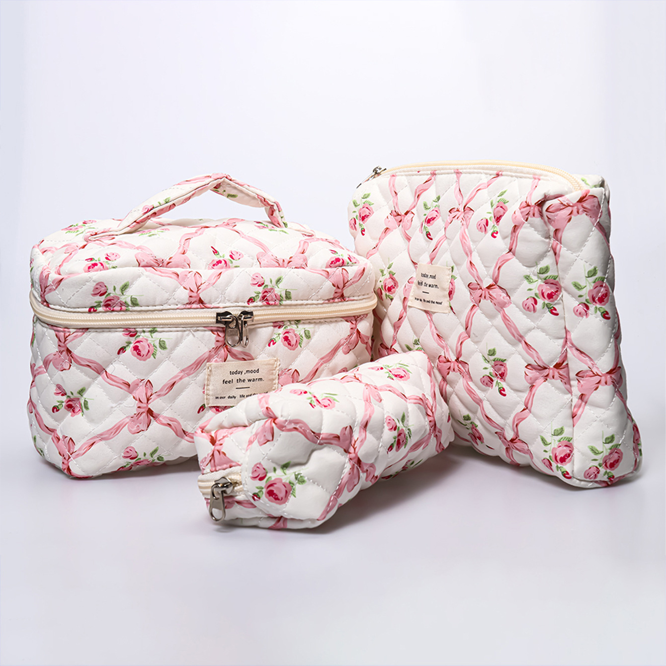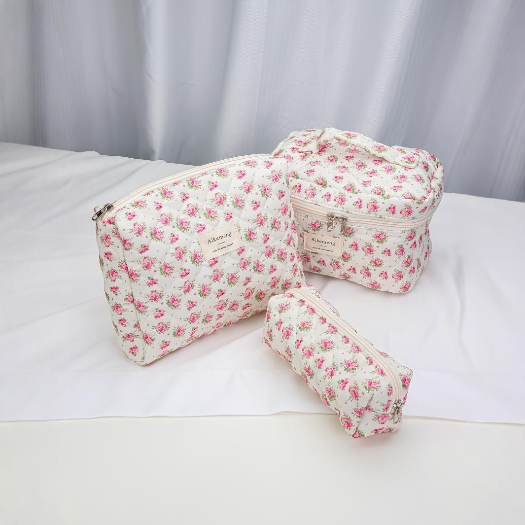 여행용 크로스보더 퀼팅 대용량 화장품 가방 휴대용 세면도구 수납 가방 꽃무늬 3종 세트