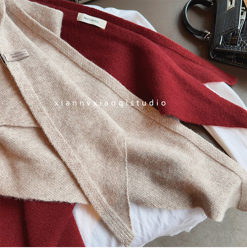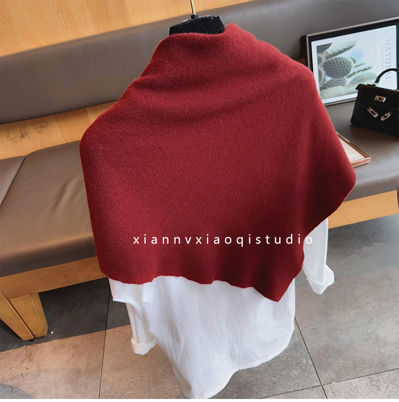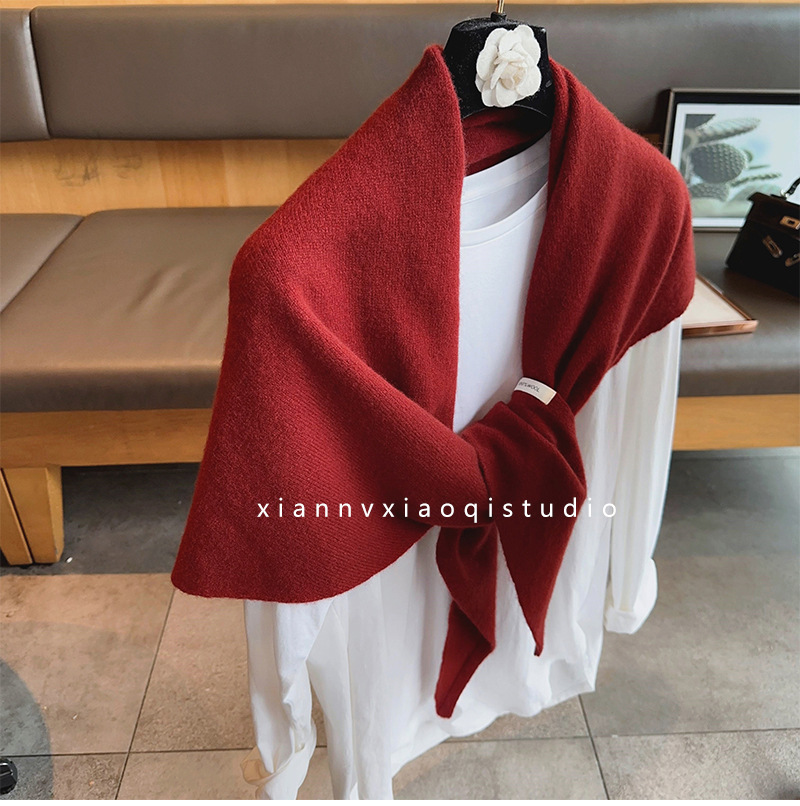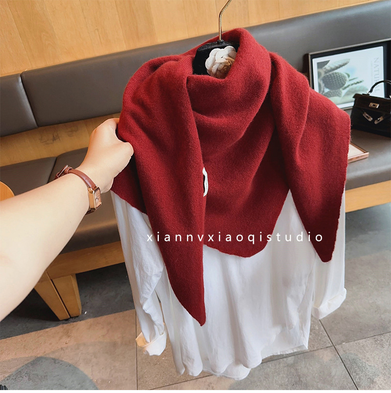 2024 년 가을과 겨울 새로운 호주 양모 WOL 목도리 여성 서양식 안콜라 레드 따뜻한 삼각형 스카프 두꺼운 어깨스토어 가기