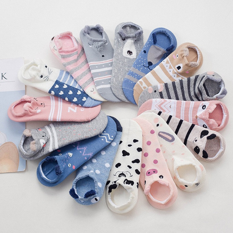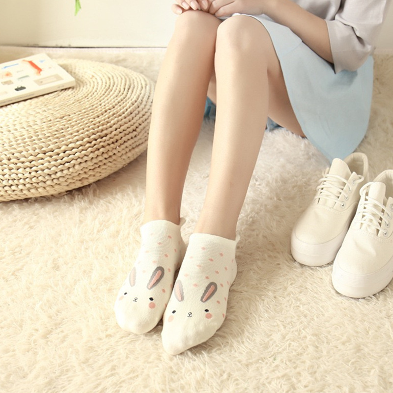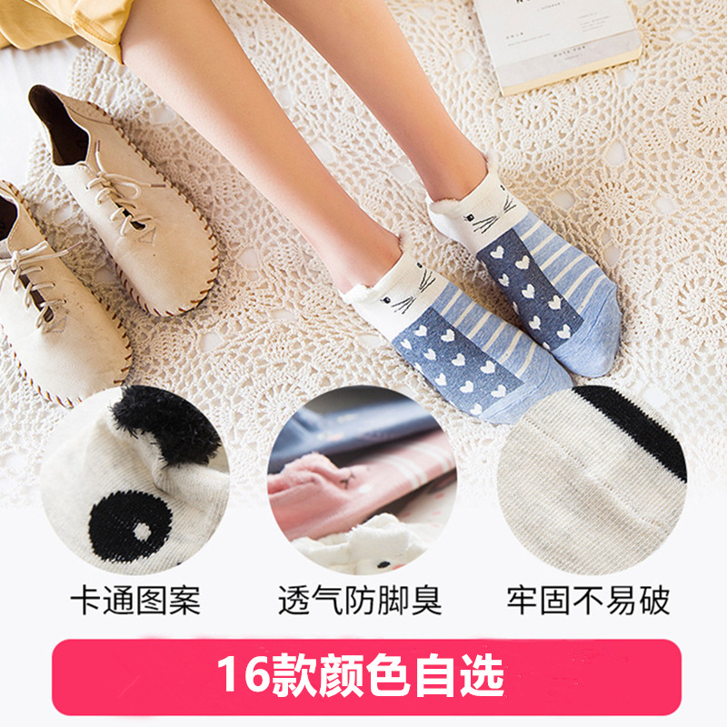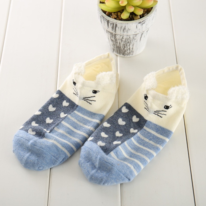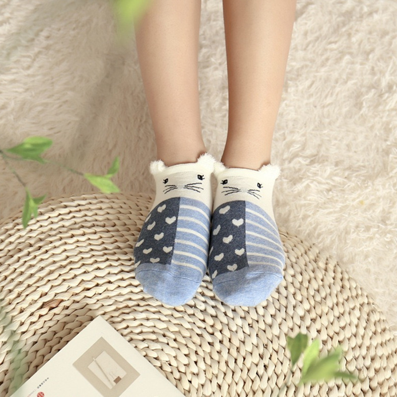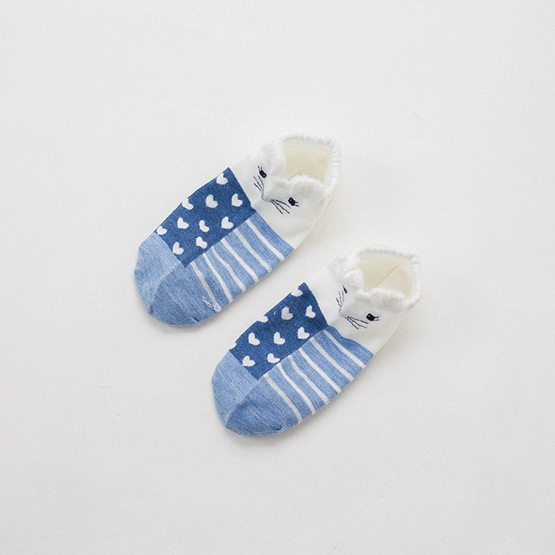 양말 여성의 봄과 여름 얇은 면 짧은 로우 사이드 보트 양말 일본 캐주얼 만화 양말 귀여운 입체 귀 양말