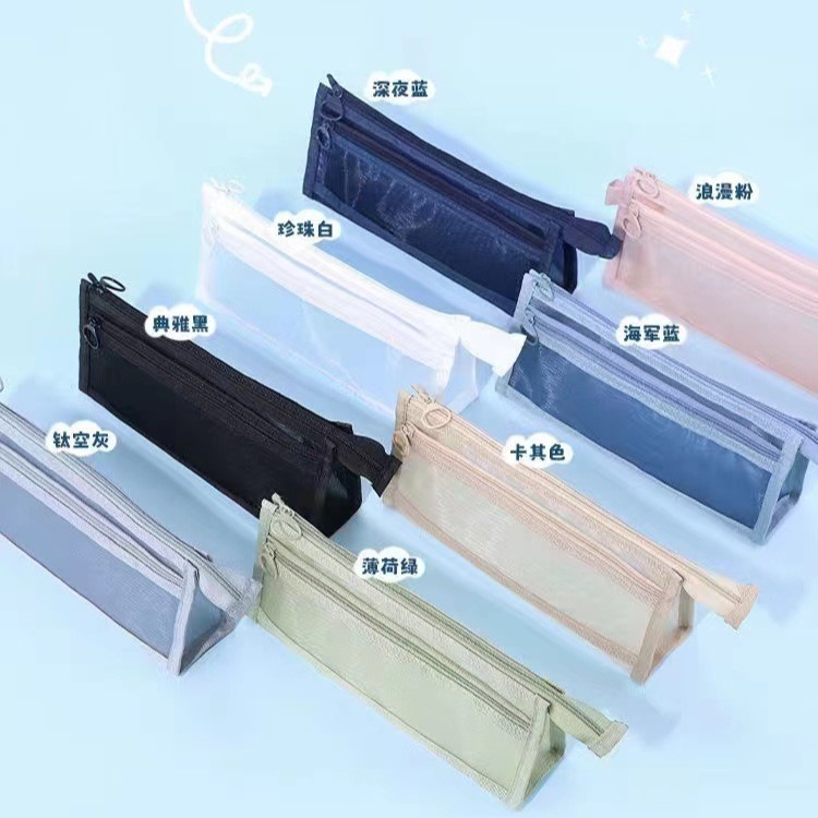 이중 투명 삼각형 필통 대용량 입체 메쉬 필통 시험용 문구 가방 이중 필통 맞춤 제작