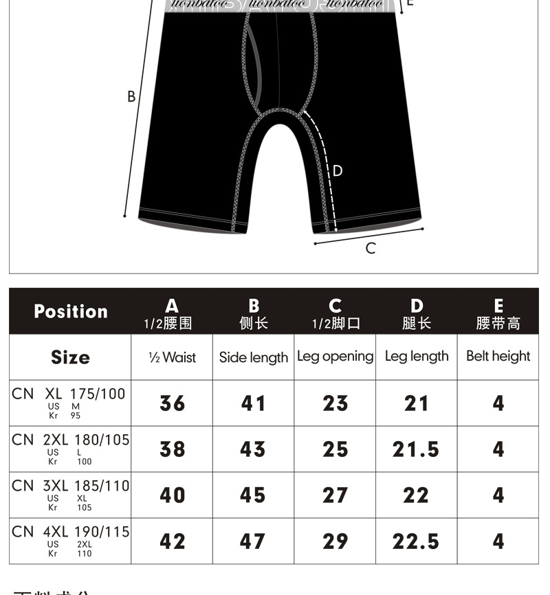 加长款男士运动型内裤,95%棉+5%氨纶。版型是偏大的。卡码拍小