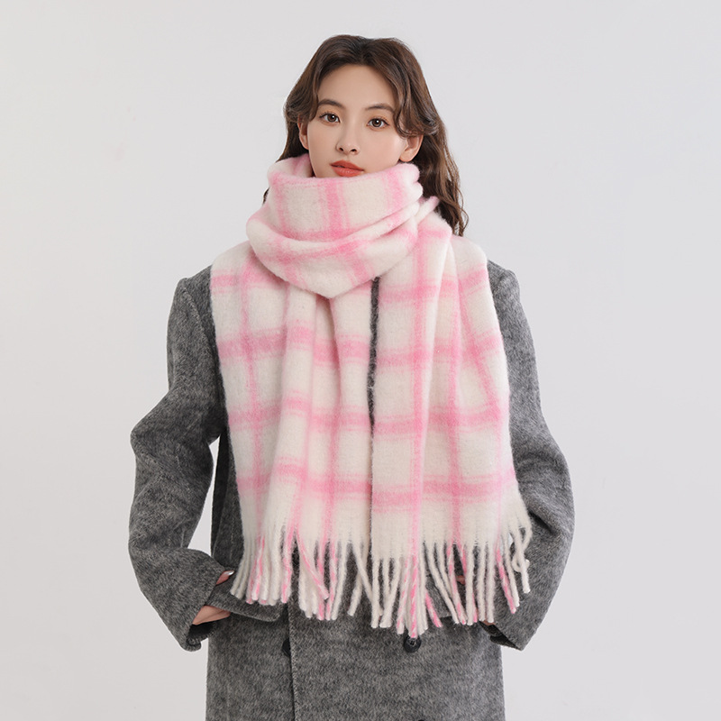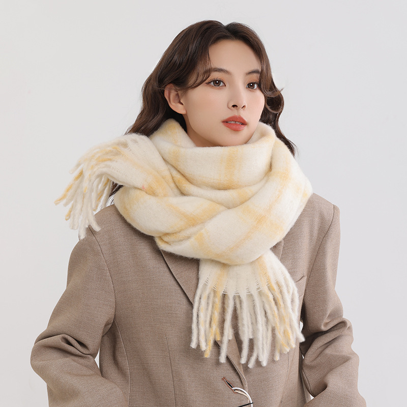 부드러운 베이지 격자 무늬 울 패션 스카프 여성의 가을과 겨울 따뜻한 올 매치 학생 커플 목 패션과 화이트 사슴