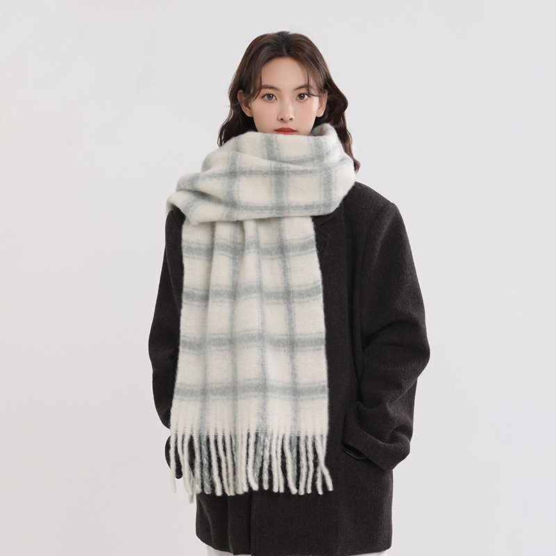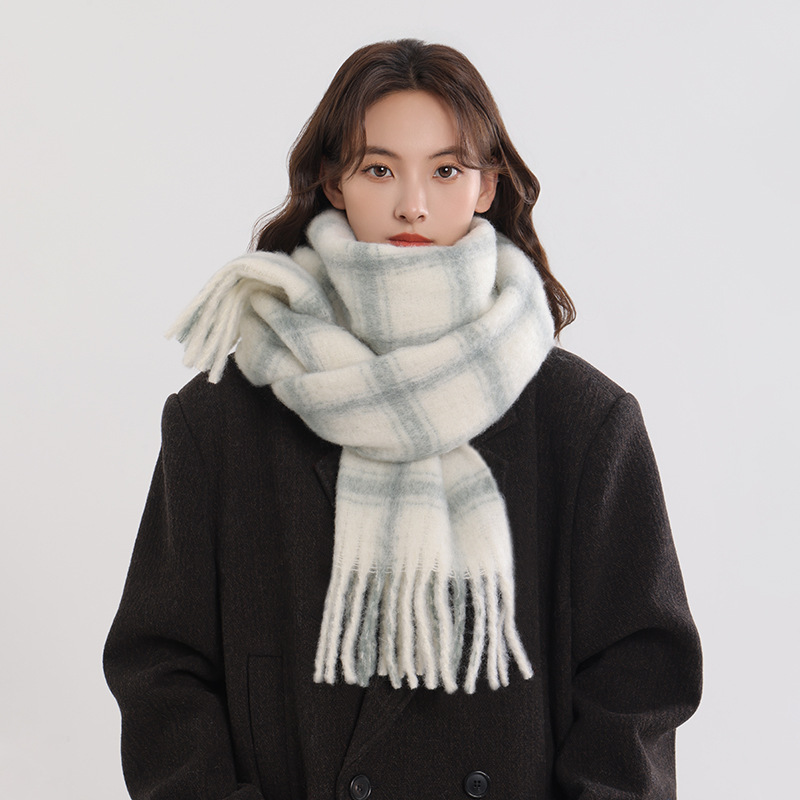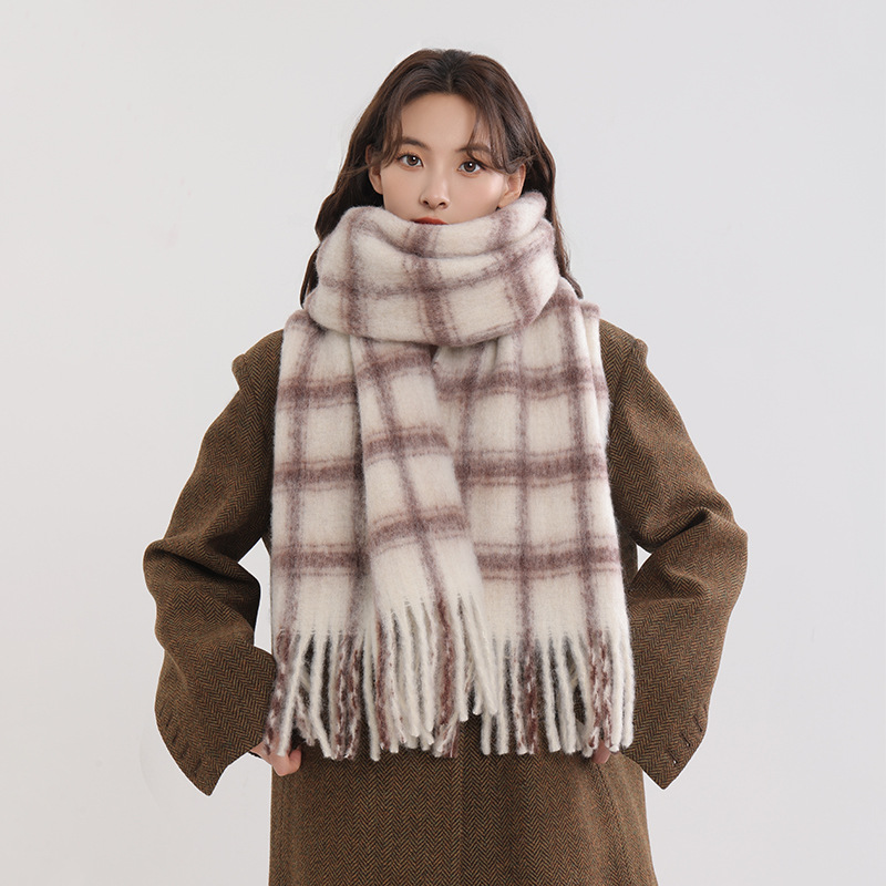 부드러운 베이지 격자 무늬 울 패션 스카프 여성의 가을과 겨울 따뜻한 올 매치 학생 커플 목 패션과 화이트 사슴스토어 가기
