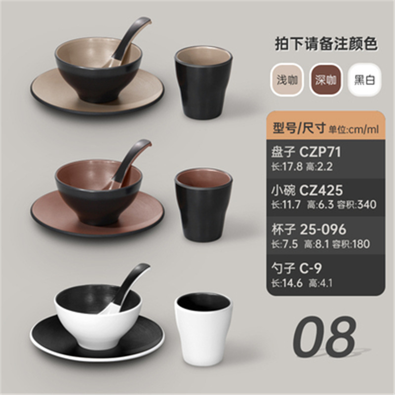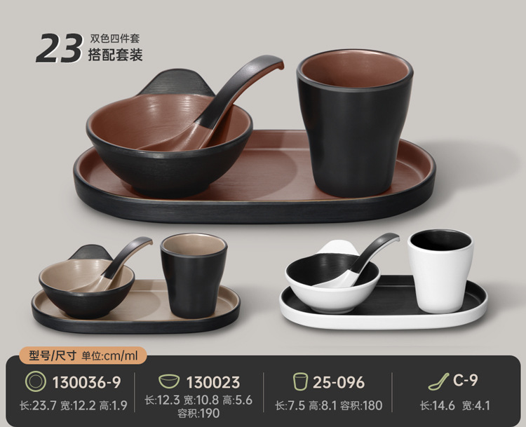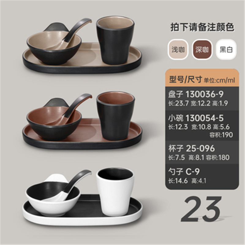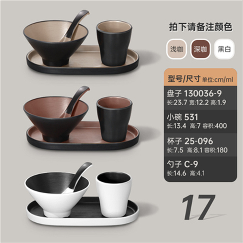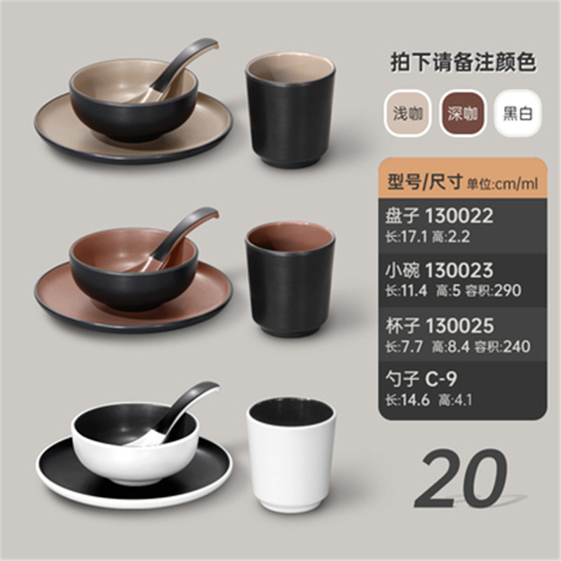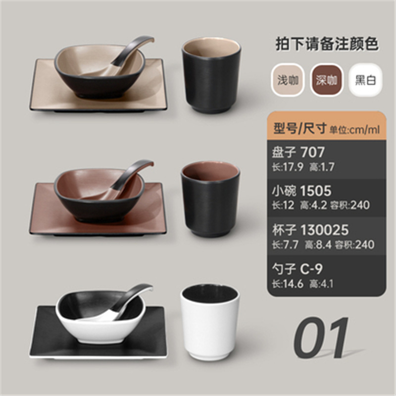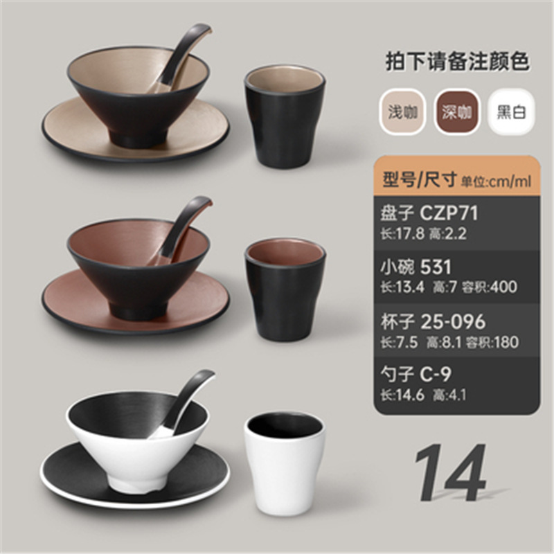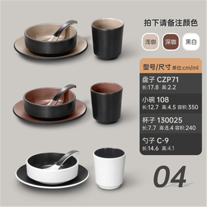 멜라민 특징적인 채핑 접시 테이블 식기 4 조각 모조 도자기 레스토랑 레스토랑 특별 식기 컵 스푼 세트스토어 가기
