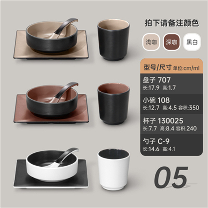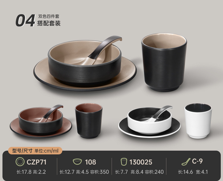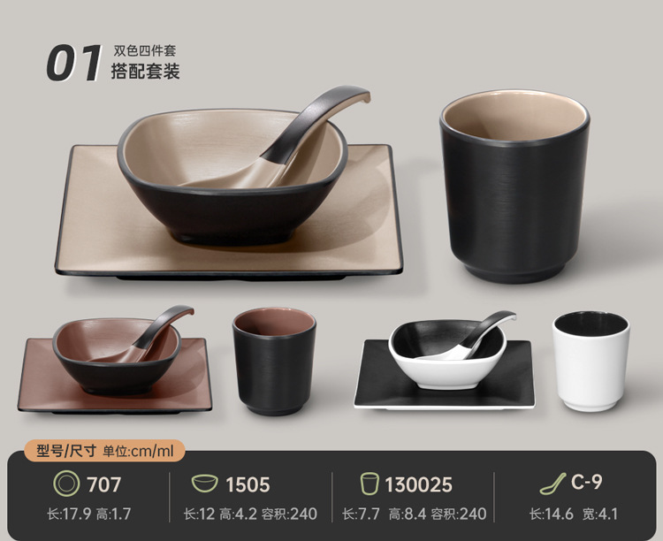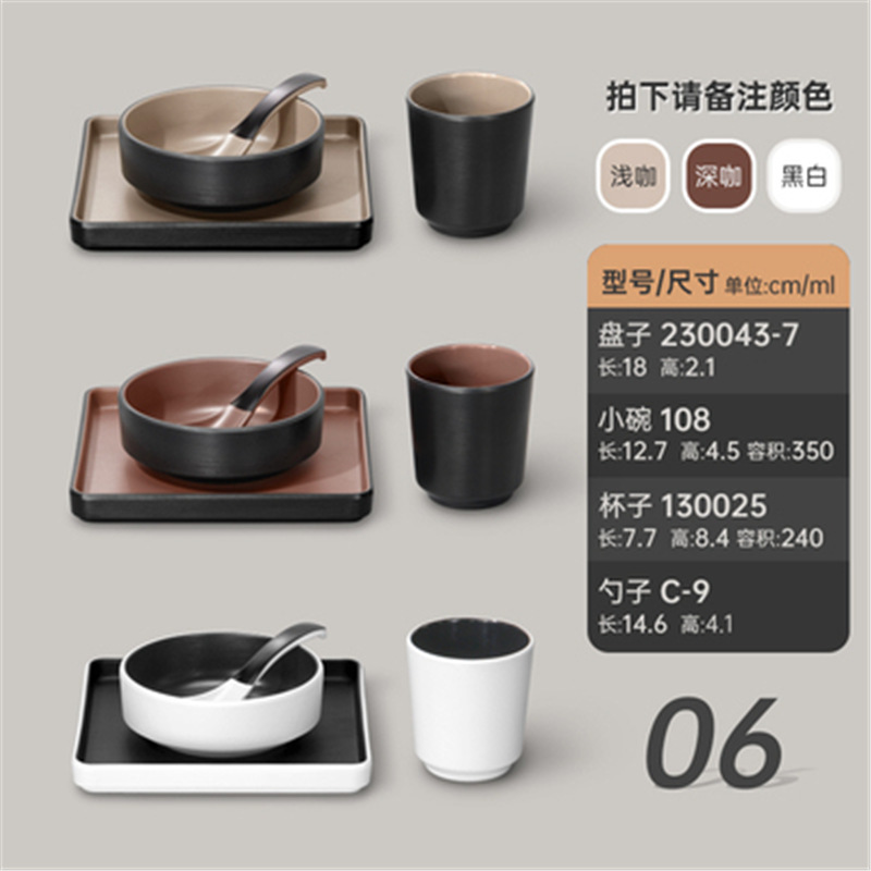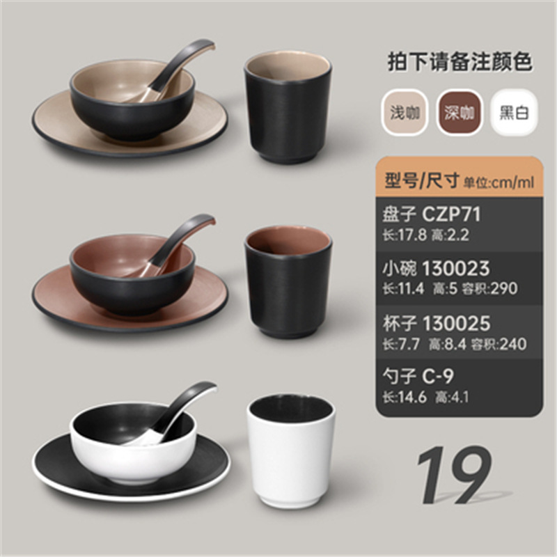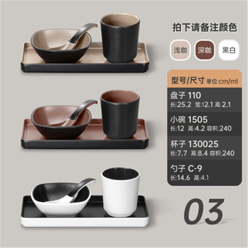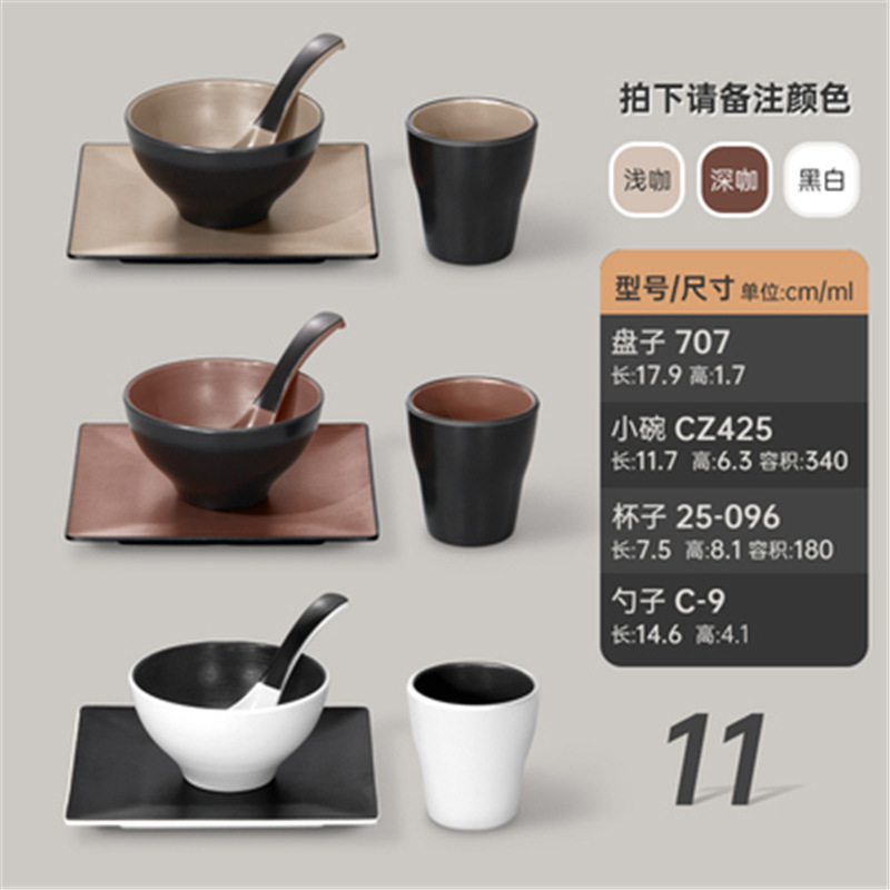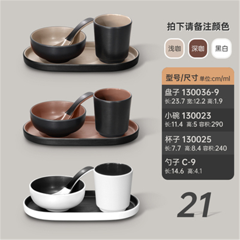 멜라민 특징적인 채핑 접시 테이블 식기 4 조각 모조 도자기 레스토랑 레스토랑 특별 식기 컵 스푼 세트스토어 가기