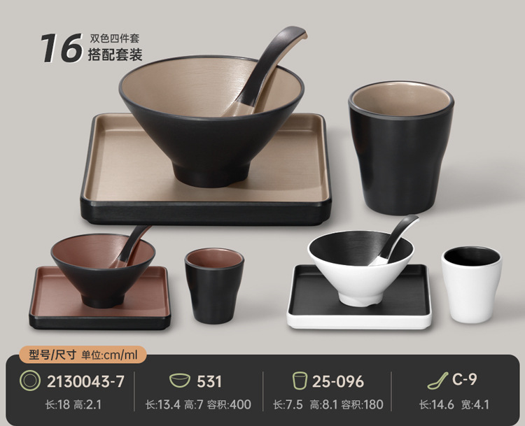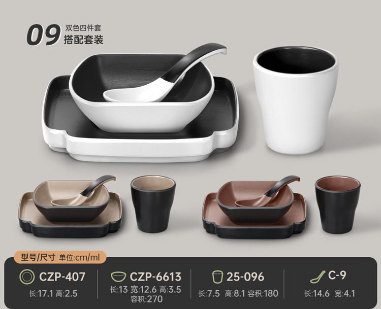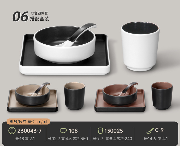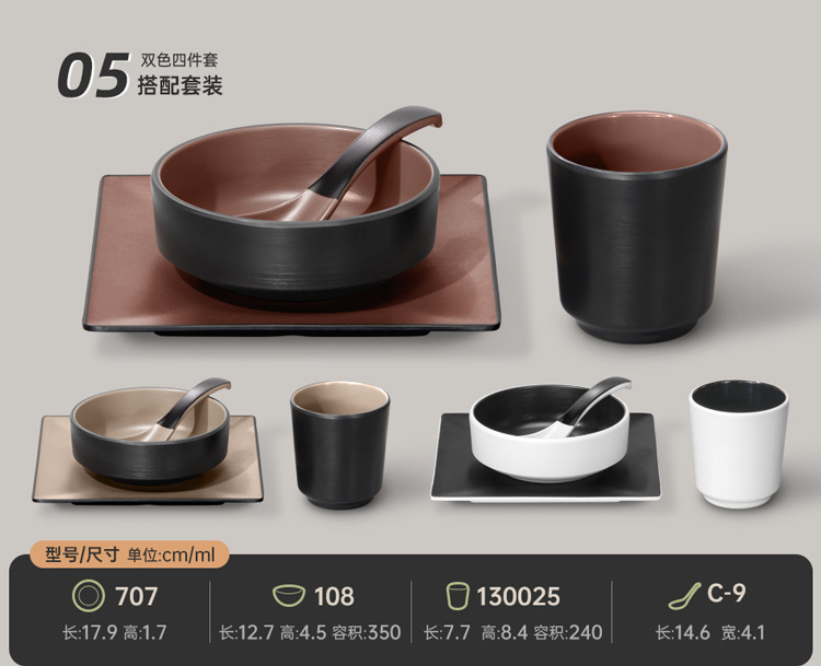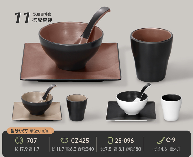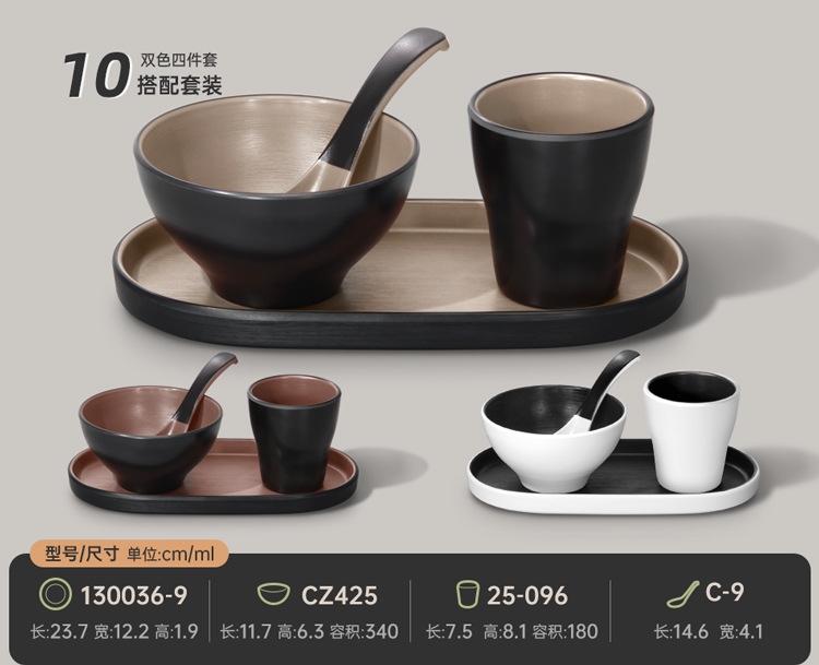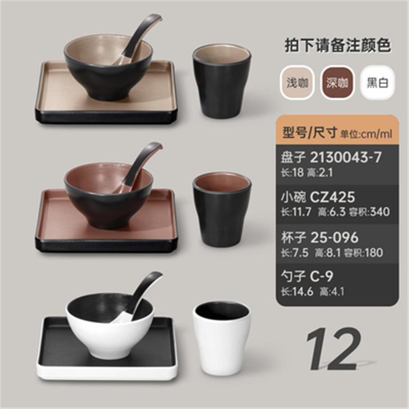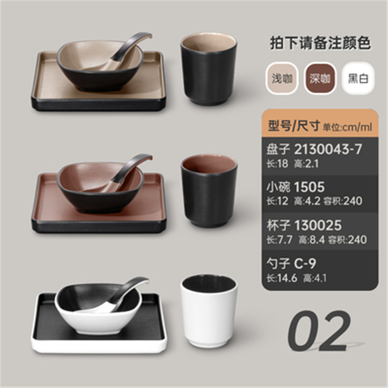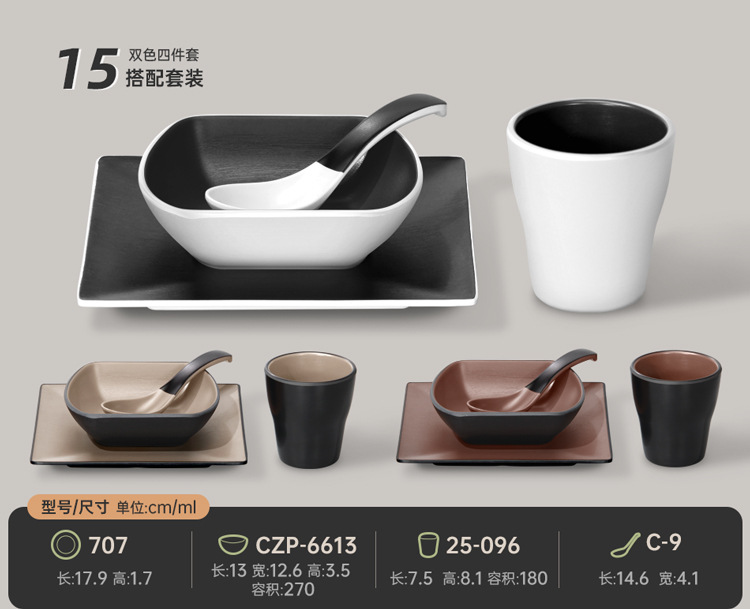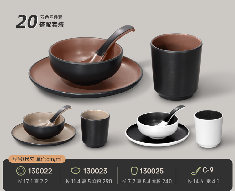 멜라민 특징적인 채핑 접시 테이블 식기 4 조각 모조 도자기 레스토랑 레스토랑 특별 식기 컵 스푼 세트스토어 가기