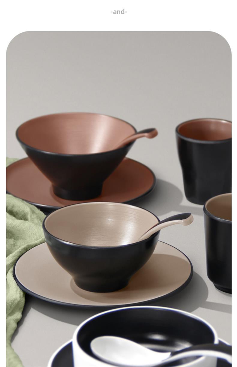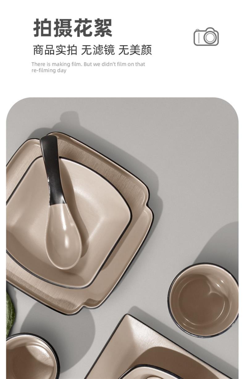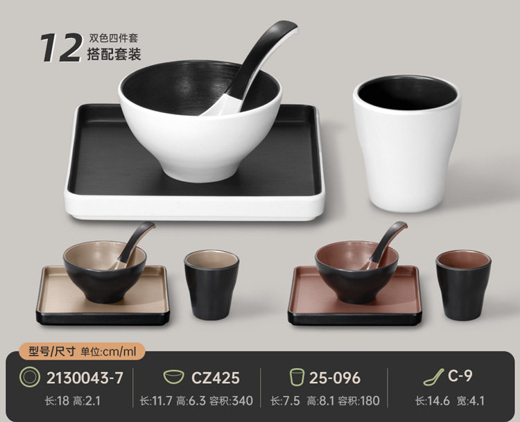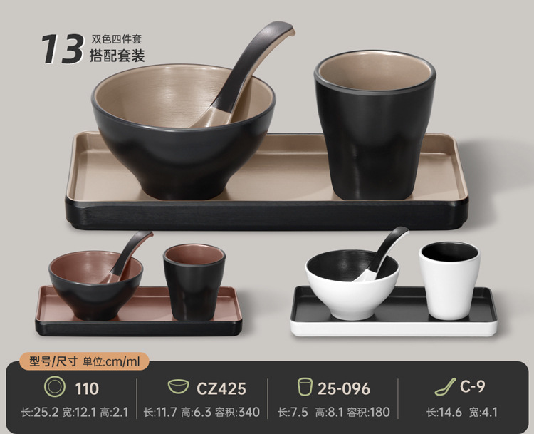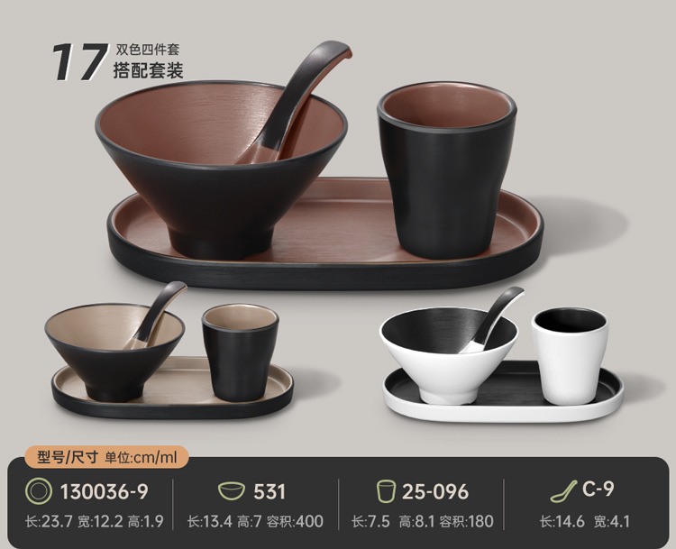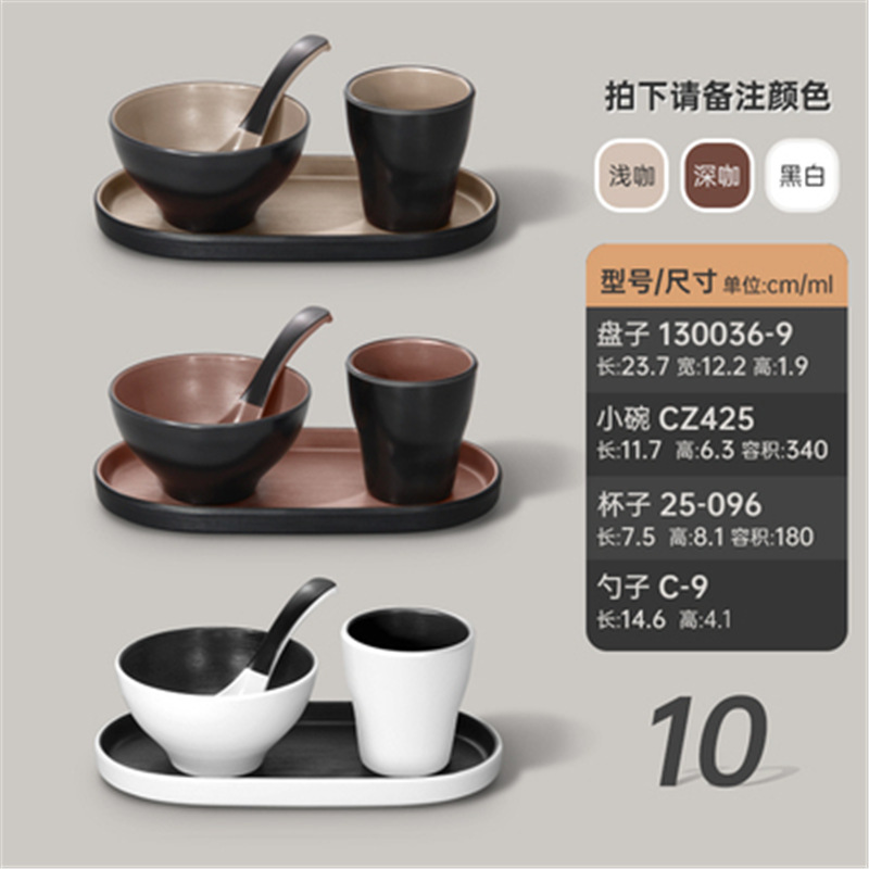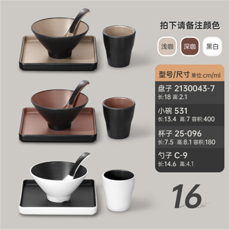 멜라민 특징적인 채핑 접시 테이블 식기 4 조각 모조 도자기 레스토랑 레스토랑 특별 식기 컵 스푼 세트스토어 가기