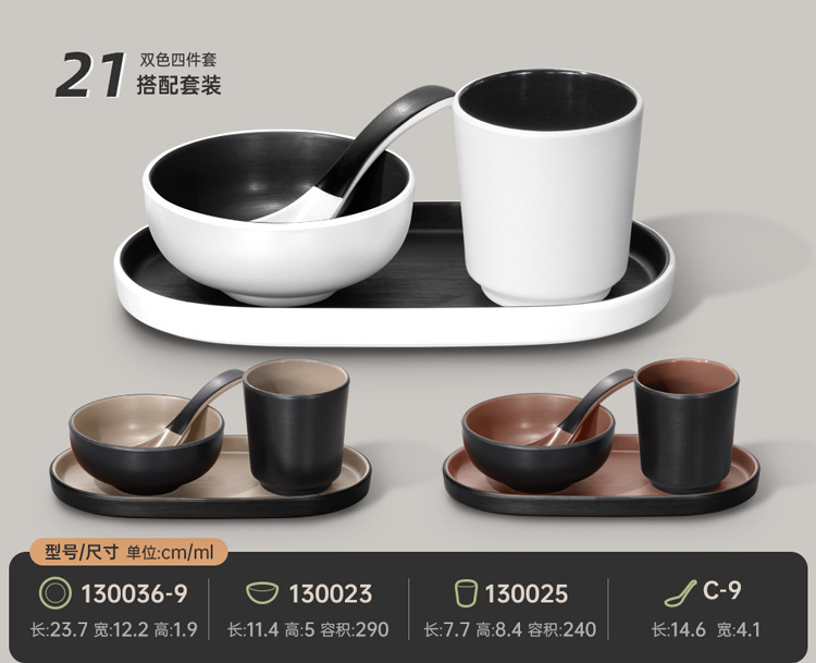 멜라민 특징적인 채핑 접시 테이블 식기 4 조각 모조 도자기 레스토랑 레스토랑 특별 식기 컵 스푼 세트