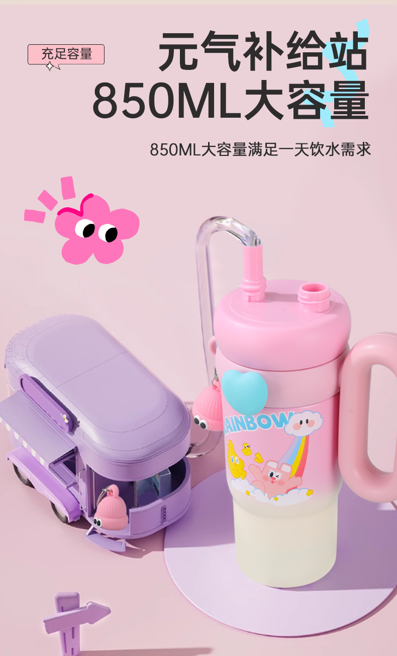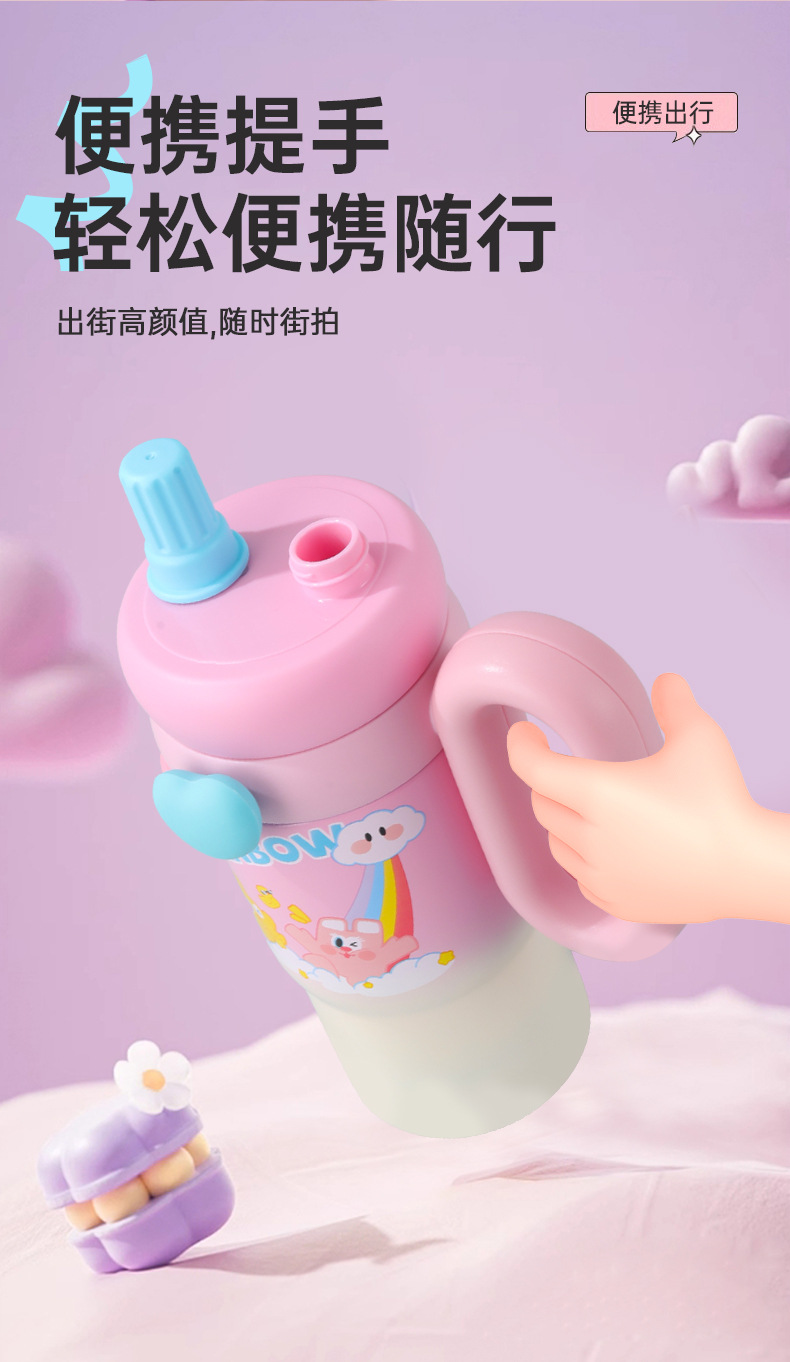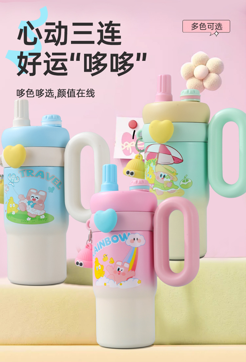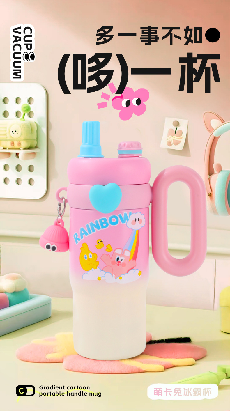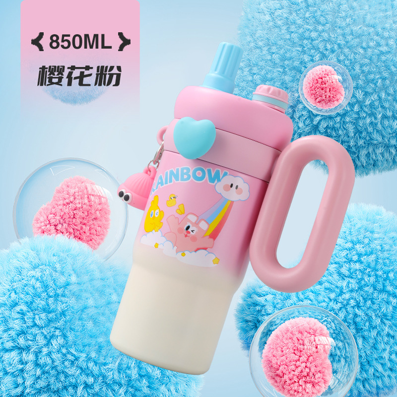 새로운 귀여운 토끼 빅맥 보온병 컵, 슈퍼 귀여운 빨대, 고급스러운 아이스 컵, 대용량 손잡이 자동차 컵스토어 가기
