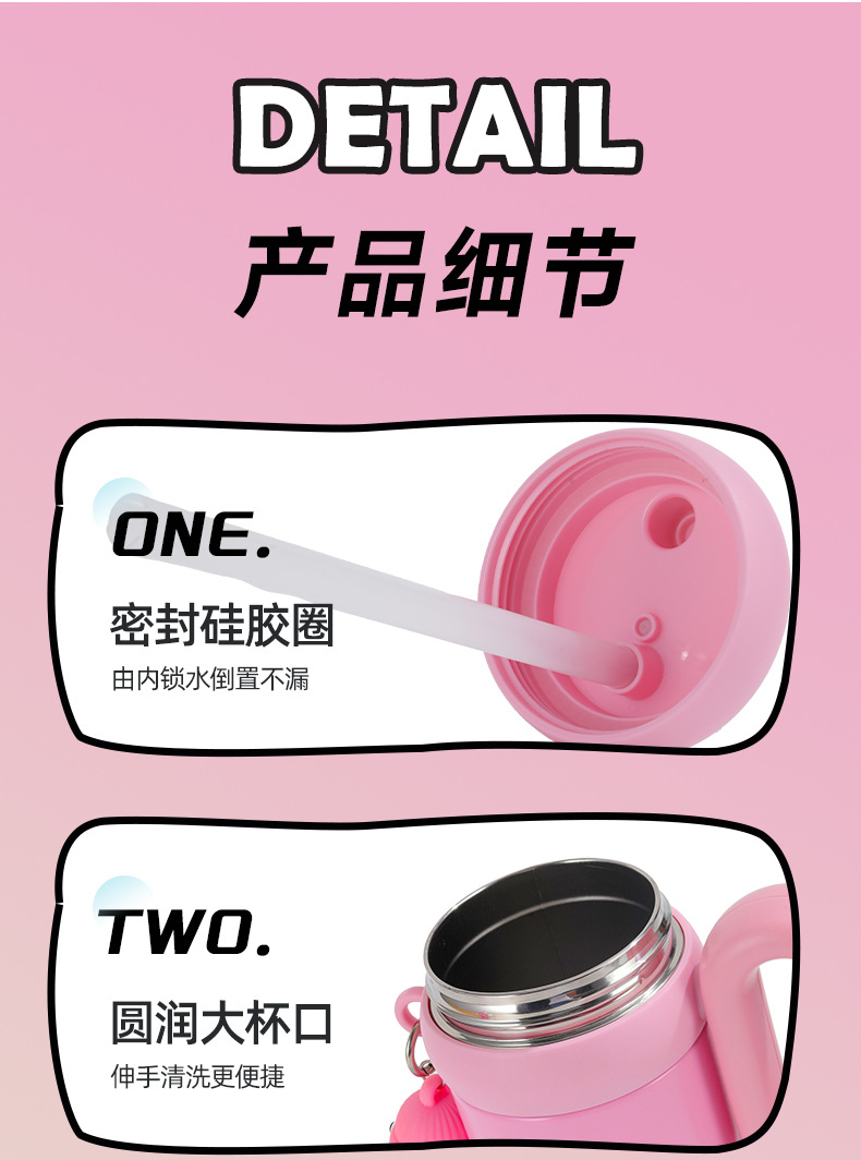 새로운 귀여운 토끼 빅맥 보온병 컵, 슈퍼 귀여운 빨대, 고급스러운 아이스 컵, 대용량 손잡이 자동차 컵
